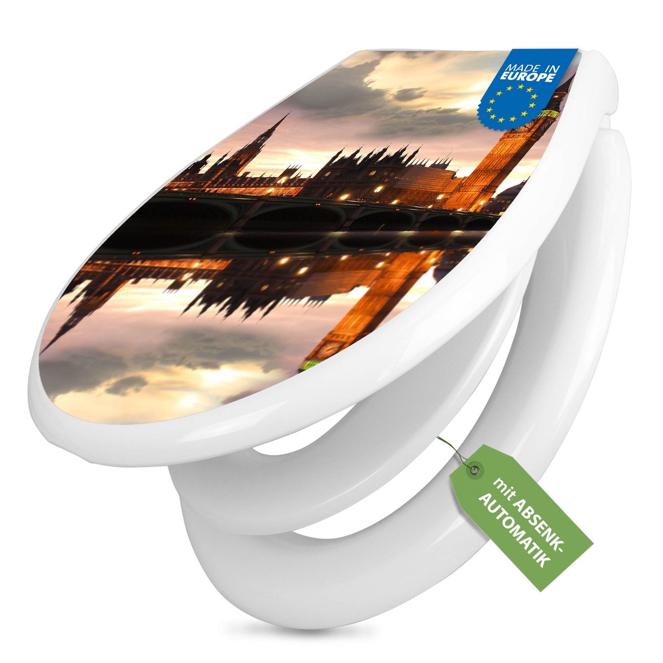 Toilettendeckel weiß mit Absenkautomatik Motiv Palace of Westminster