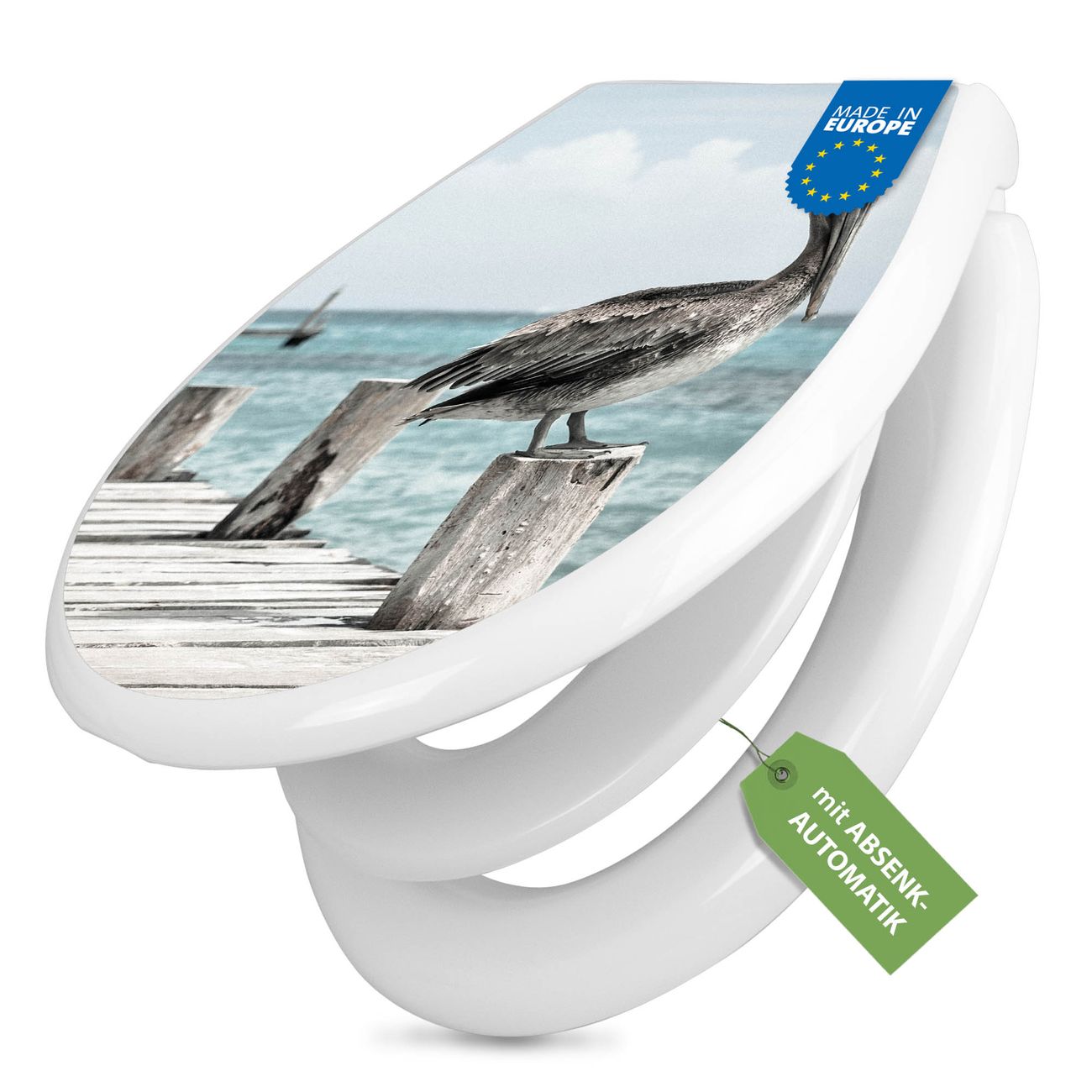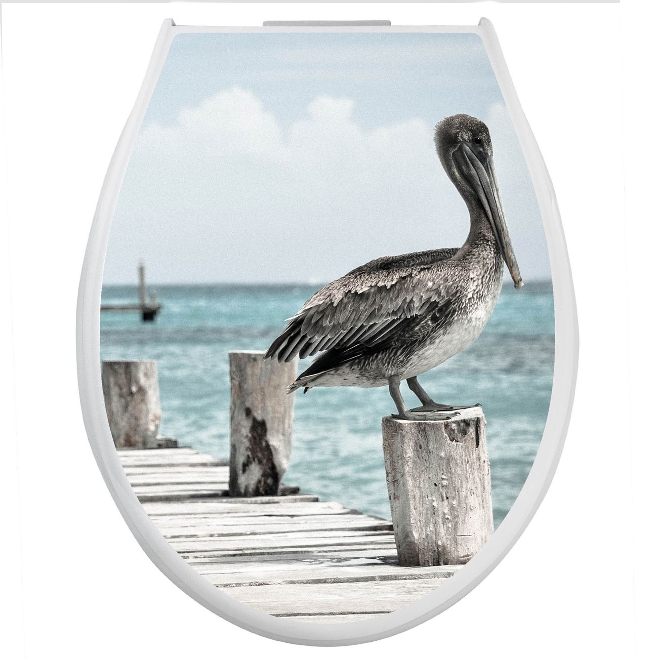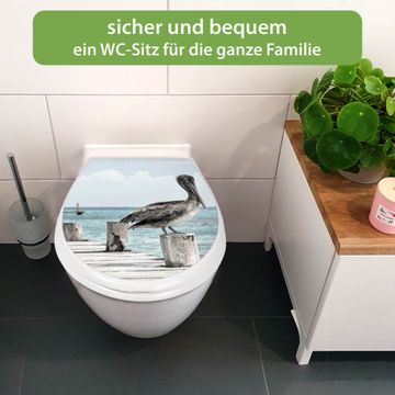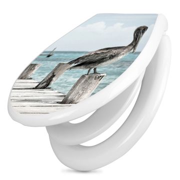 Toilettendeckel weiß mit Absenkautomatik Motiv Pelikane