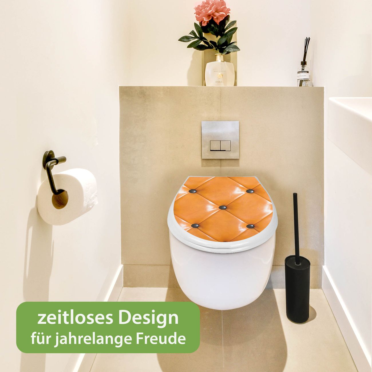 Toilettendeckel weiß mit Absenkautomatik Motiv Polster Orange