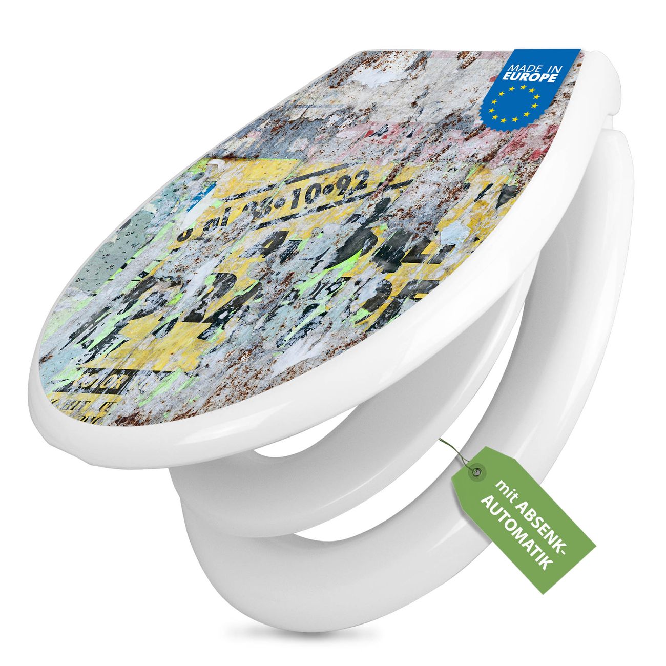 Toilettendeckel weiß mit Absenkautomatik Motiv Posterwand