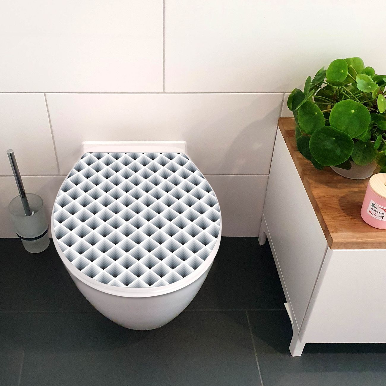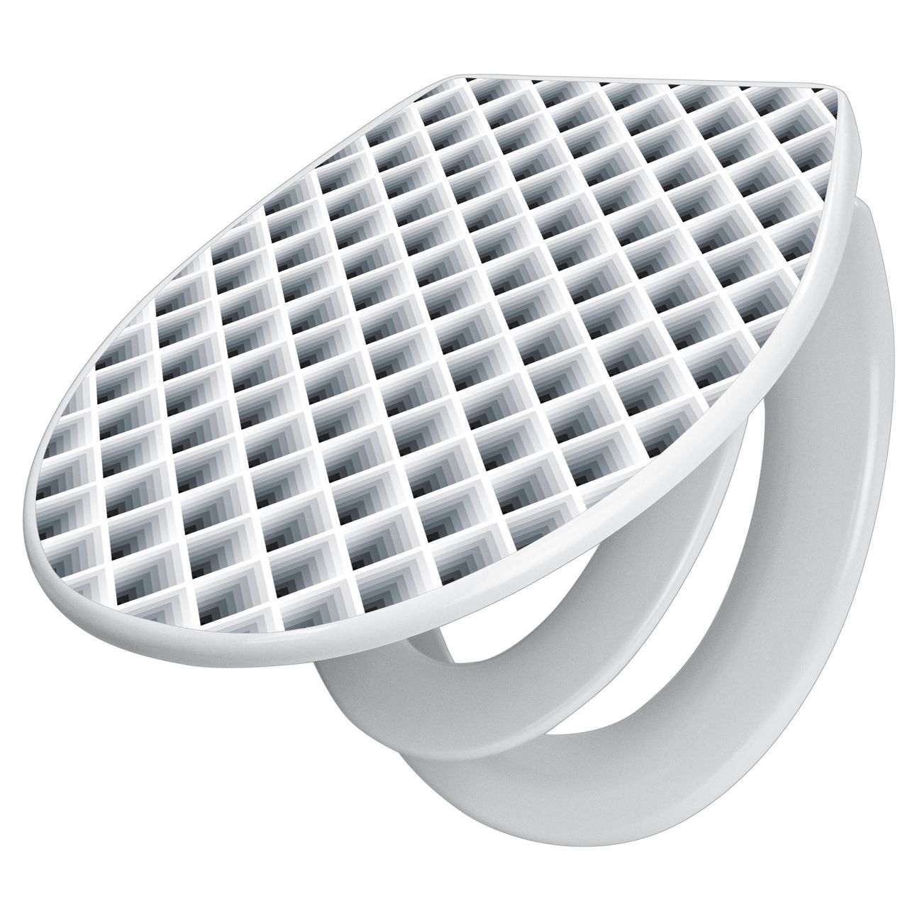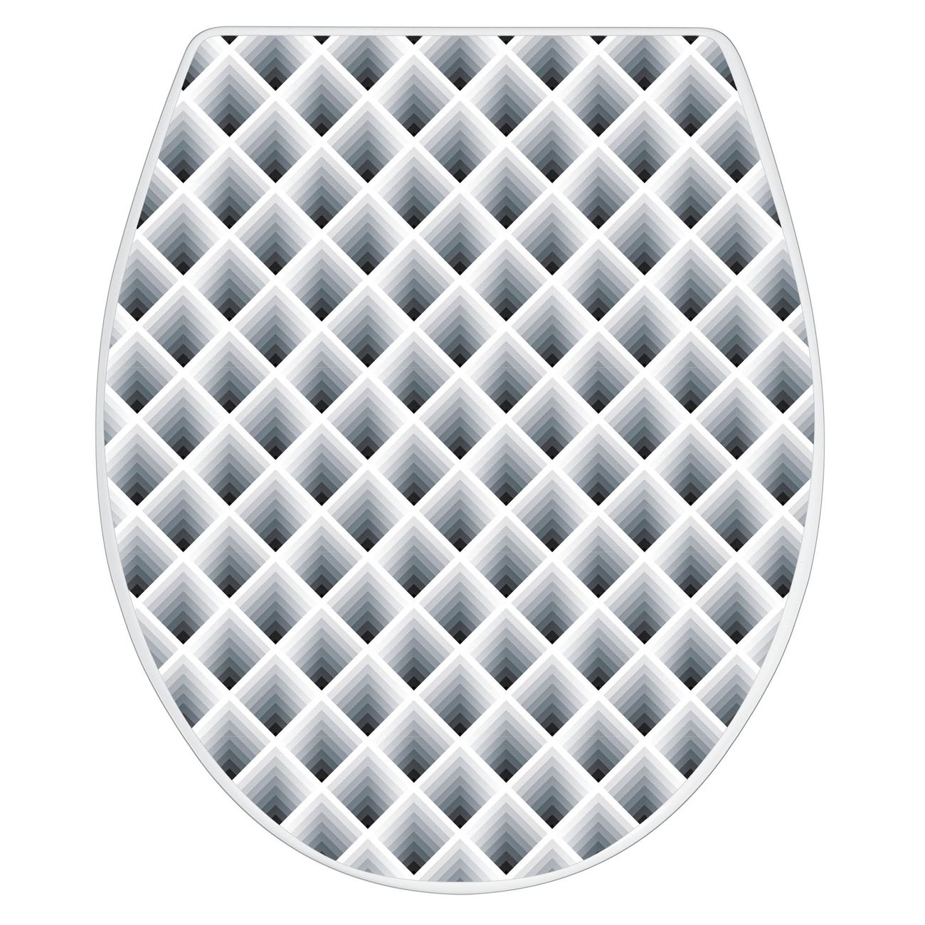 Toilettendeckel weiß mit Absenkautomatik Motiv Raster 3D Grau