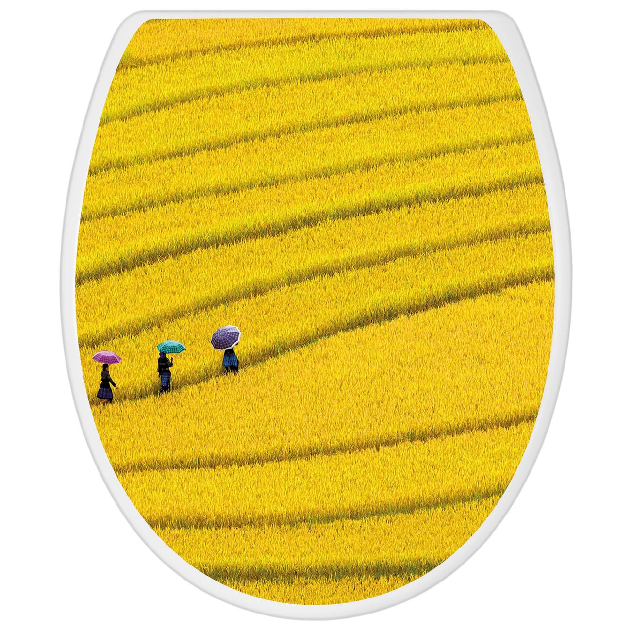 Toilettendeckel weiß mit Absenkautomatik Motiv Reisfeld Vietnam