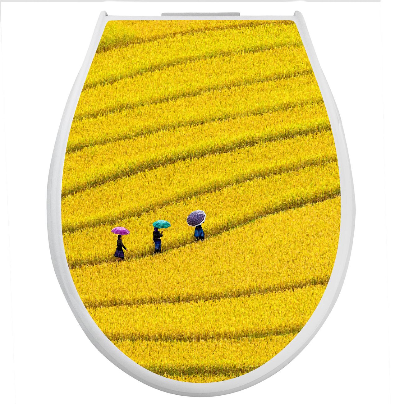 Toilettendeckel weiß mit Absenkautomatik Motiv Reisfeld Vietnam