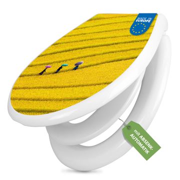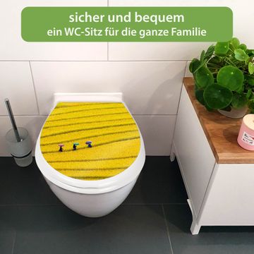FUNKTION:Mit dem banjado Familien WC Sitz mit Absenkautomatik und dem Motiv Motiv Reisfeld Vietnam verbinden Sie Design mit Funktionalität. Sie erhalten den Toilettendeckel in bewährt guter Qualität mit Montagematerial passend auf alle Euro-WC-Becken. Die Gesamtgröße beträgt 37,1cm x 44,9cm x 5cm, die Grundfarbe ist weiß.</p> DESIGN:Der Klodeckel in weiß mit Motiv Motiv Reisfeld Vietnam hat eine ansprechende Optik, eine besondere Form und ist sehr stabil. Das Motiv besteht aus einer farbbrillianten Motivfolie, die durch ein Schutzlaminat zusätzlich vor Kratzern schützt. Der integrierte Kindersitz fügt sich harmonisch ein. DETAILS:Der Toilettensitz mit Soft Close besteht aus hochwertigem Polypropylen, ist geruchlos, ungiftig und kann mit handelsüblicher Seife gereinigt werden. Die Montage kann von von oben oder von unten erfolgen und ist kinderleicht. NUTZEN:Mit Hilfe der detaillierten Aufbauanleitung ermöglichen wir eine schnelle und unkomplizierte Montage. Die banjado Klobrille ist universell geeignet für alle Euro-WC-Schüsseln. Der Kindersitz kann unkompliziert entfernt werden. BANJADO:Ihr WC-Deckel wird in Sachsen in einer kleinen Manufaktur von Hand veredelt. Die Motivfolie ist lösungsmittelfrei und schutzlaminiert für einen langen Halt. Wir wünschen viel Freude bei der Auswahl eines schönen Motivs.