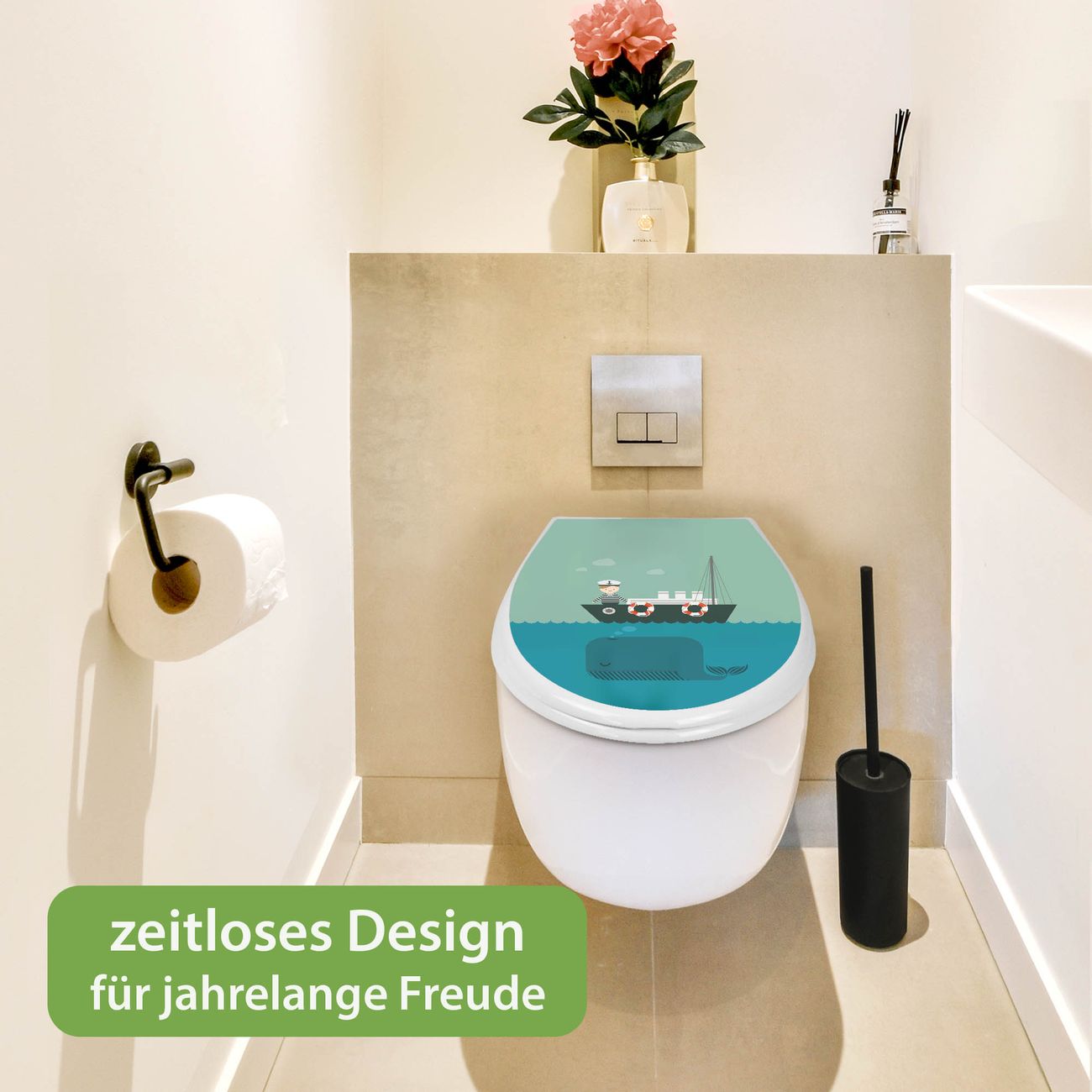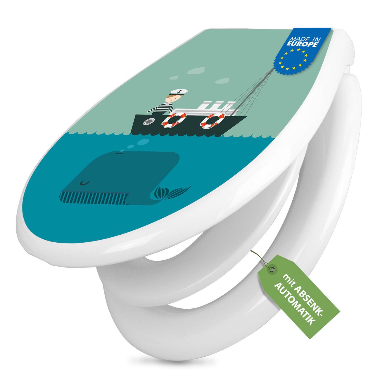 Toilettendeckel weiß mit Absenkautomatik Motiv Rettet die Wale