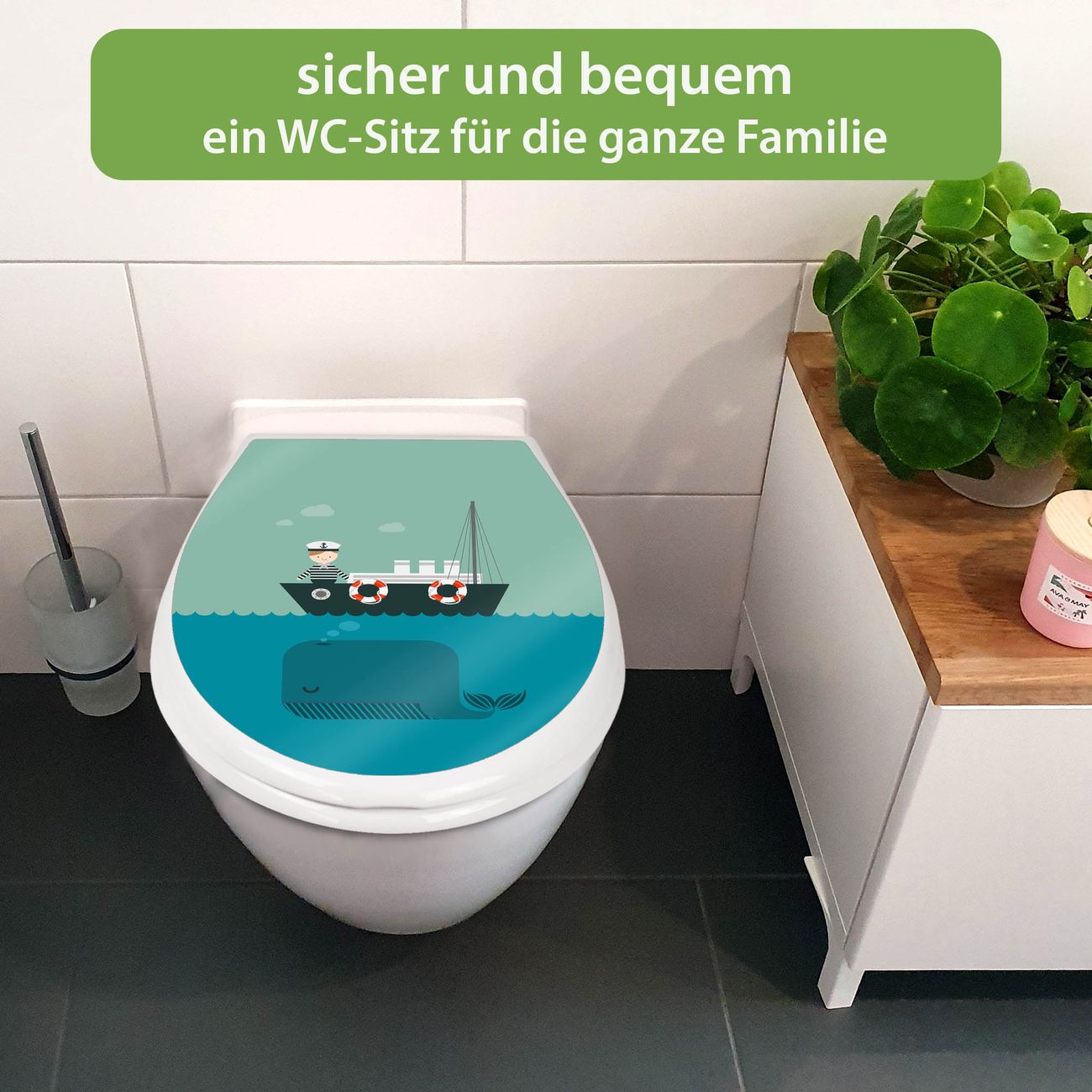 FUNKTION:Mit dem banjado Familien WC Sitz mit Absenkautomatik und dem Motiv Motiv Rettet die Wale verbinden Sie Design mit Funktionalität. Sie erhalten den Toilettendeckel in bewährt guter Qualität mit Montagematerial passend auf alle Euro-WC-Becken. Die Gesamtgröße beträgt 37,1cm x 44,9cm x 5cm, die Grundfarbe ist weiß.</p> DESIGN:Der Klodeckel in weiß mit Motiv Motiv Rettet die Wale hat eine ansprechende Optik, eine besondere Form und ist sehr stabil. Das Motiv besteht aus einer farbbrillianten Motivfolie, die durch ein Schutzlaminat zusätzlich vor Kratzern schützt. Der integrierte Kindersitz fügt sich harmonisch ein. DETAILS:Der Toilettensitz mit Soft Close besteht aus hochwertigem Polypropylen, ist geruchlos, ungiftig und kann mit handelsüblicher Seife gereinigt werden. Die Montage kann von von oben oder von unten erfolgen und ist kinderleicht. NUTZEN:Mit Hilfe der detaillierten Aufbauanleitung ermöglichen wir eine schnelle und unkomplizierte Montage. Die banjado Klobrille ist universell geeignet für alle Euro-WC-Schüsseln. Der Kindersitz kann unkompliziert entfernt werden. BANJADO:Ihr WC-Deckel wird in Sachsen in einer kleinen Manufaktur von Hand veredelt. Die Motivfolie ist lösungsmittelfrei und schutzlaminiert für einen langen Halt. Wir wünschen viel Freude bei der Auswahl eines schönen Motivs.