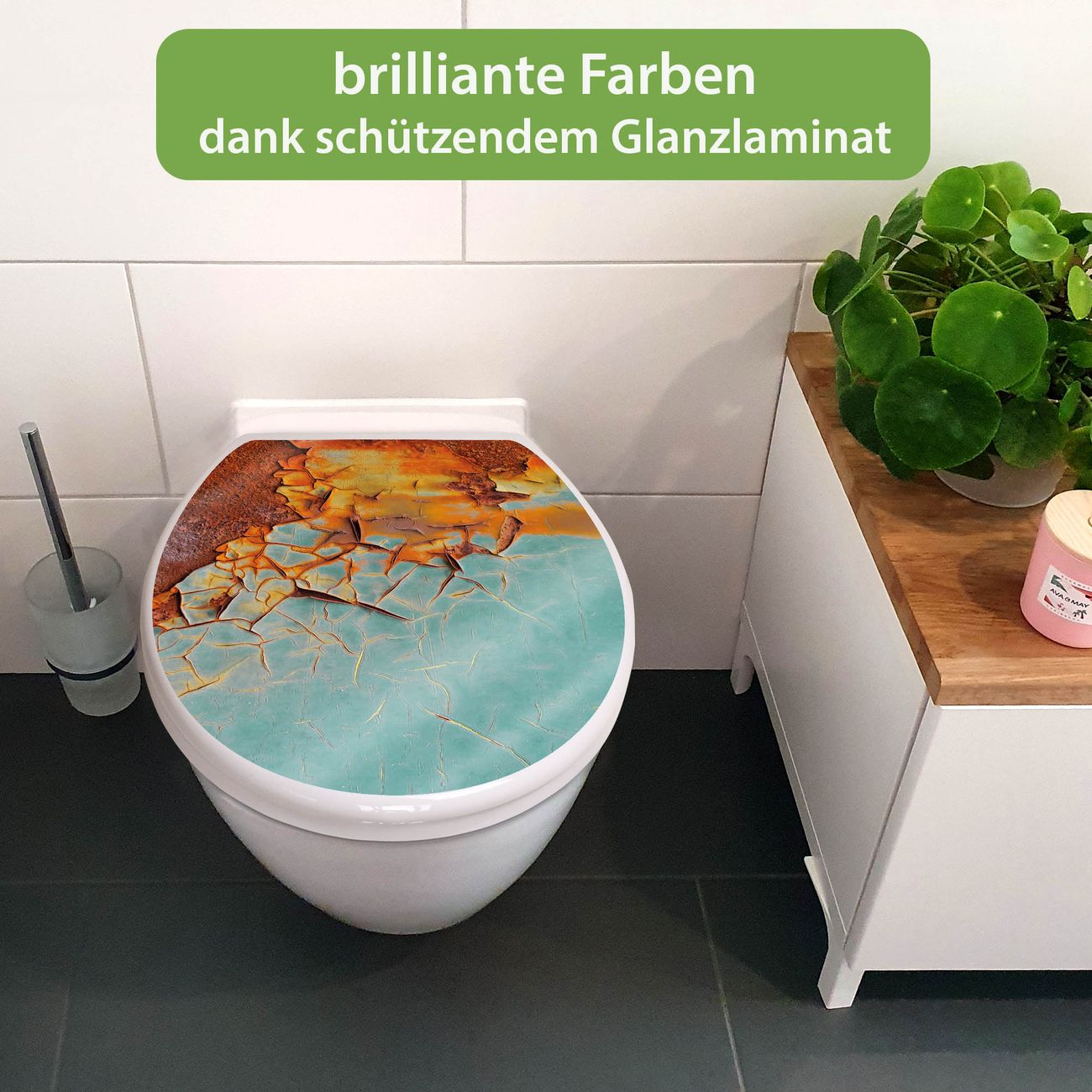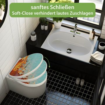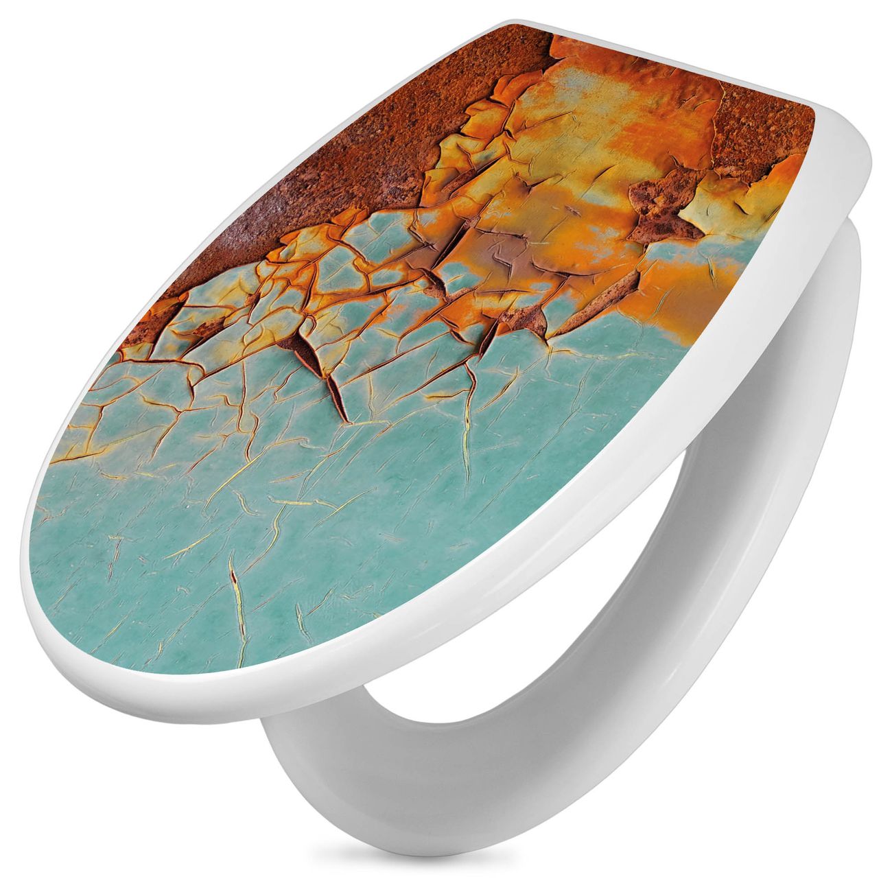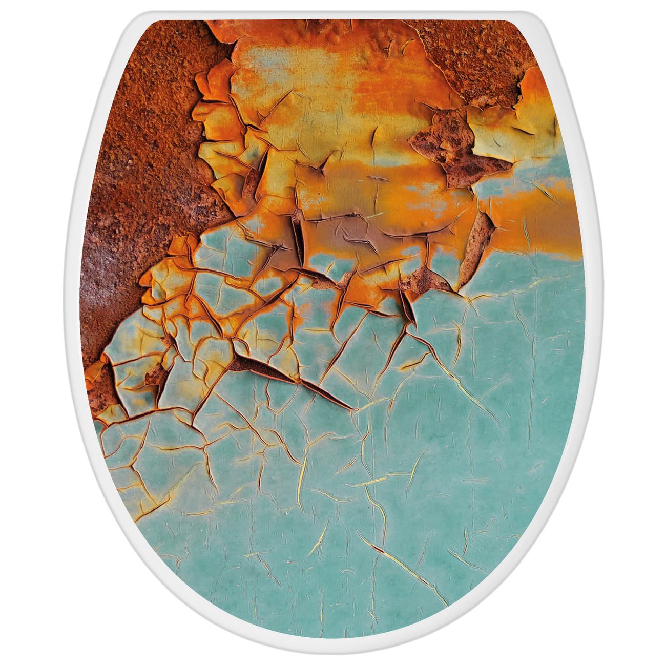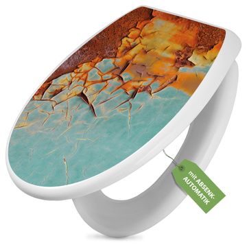 Toilettendeckel weiß mit Absenkautomatik Motiv Rost und Blau