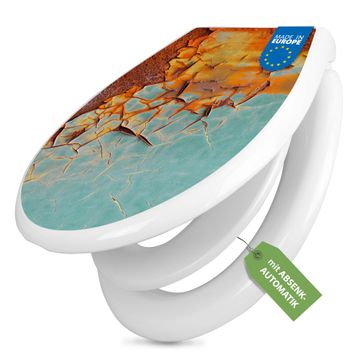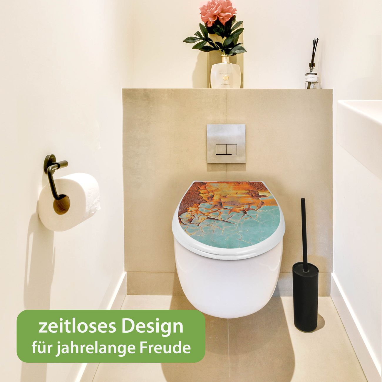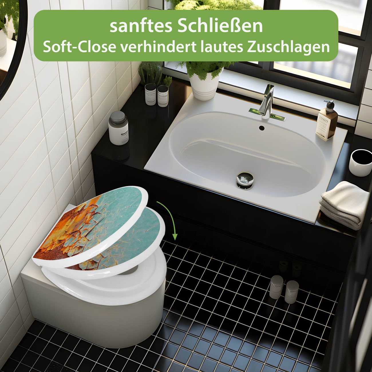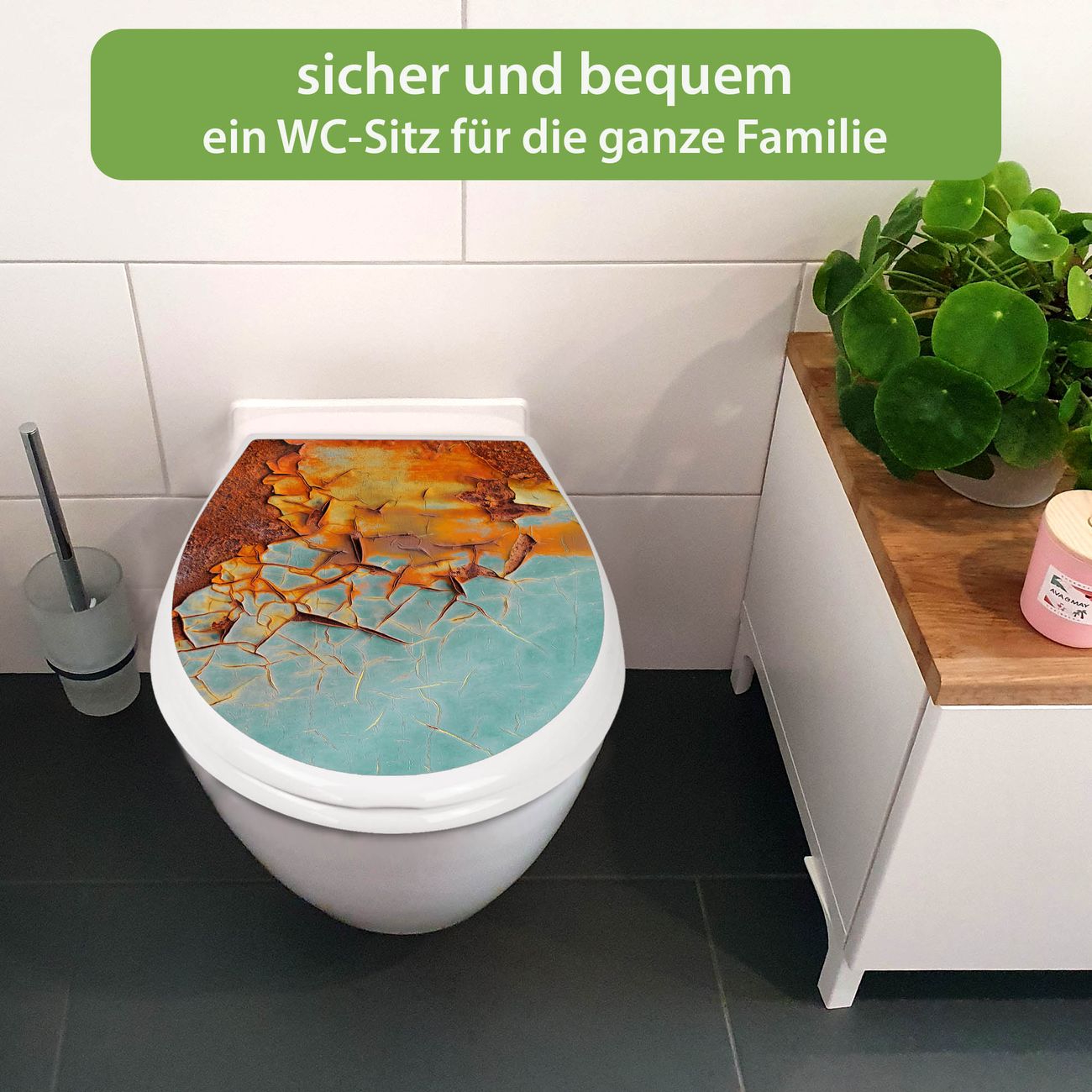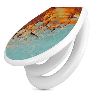 Toilettendeckel weiß mit Absenkautomatik Motiv Rost und Blau