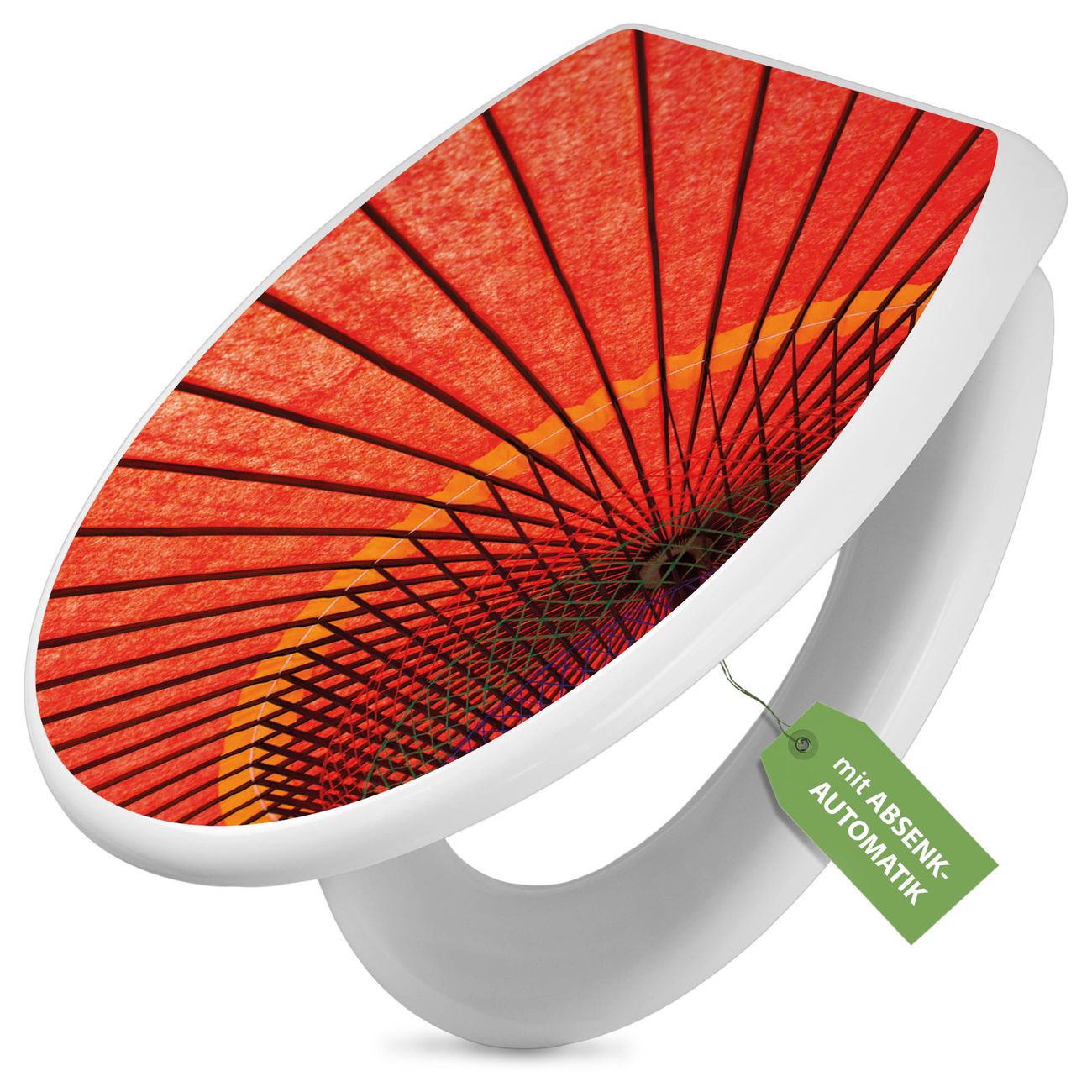 Toilettendeckel weiß mit Absenkautomatik Motiv Roter Schirm