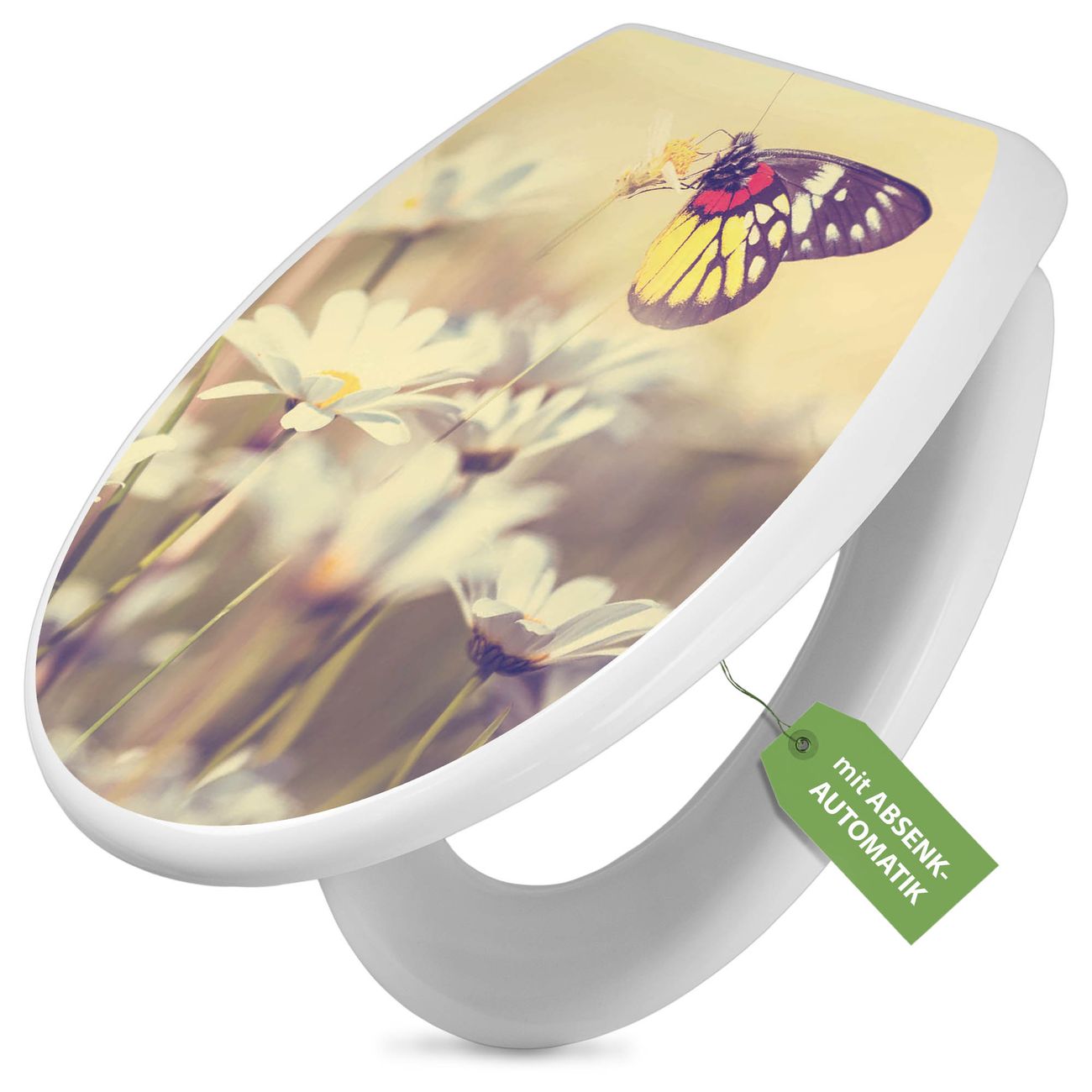 Toilettendeckel weiß mit Absenkautomatik Motiv Rotgelber Falter