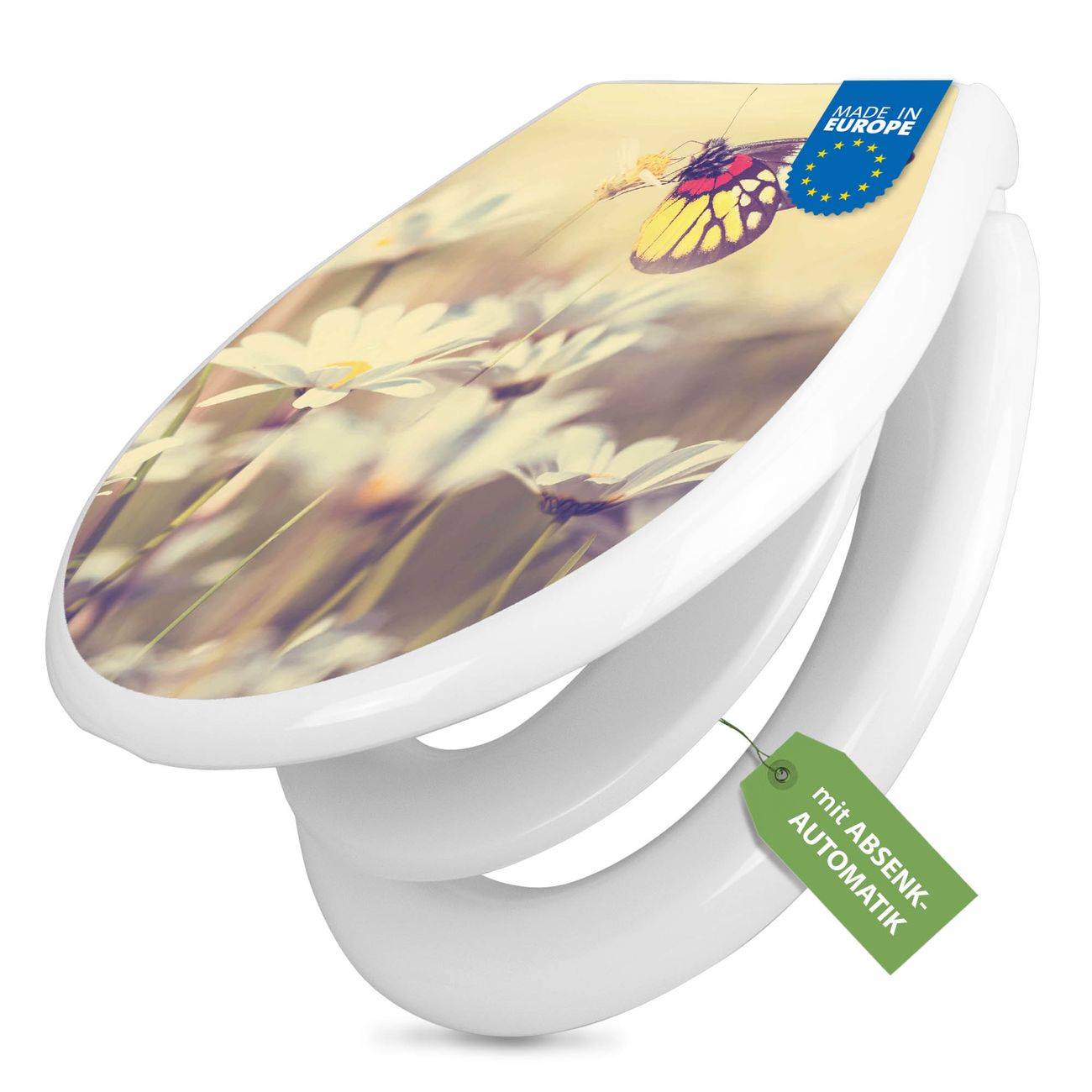 Toilettendeckel weiß mit Absenkautomatik Motiv Rotgelber Falter