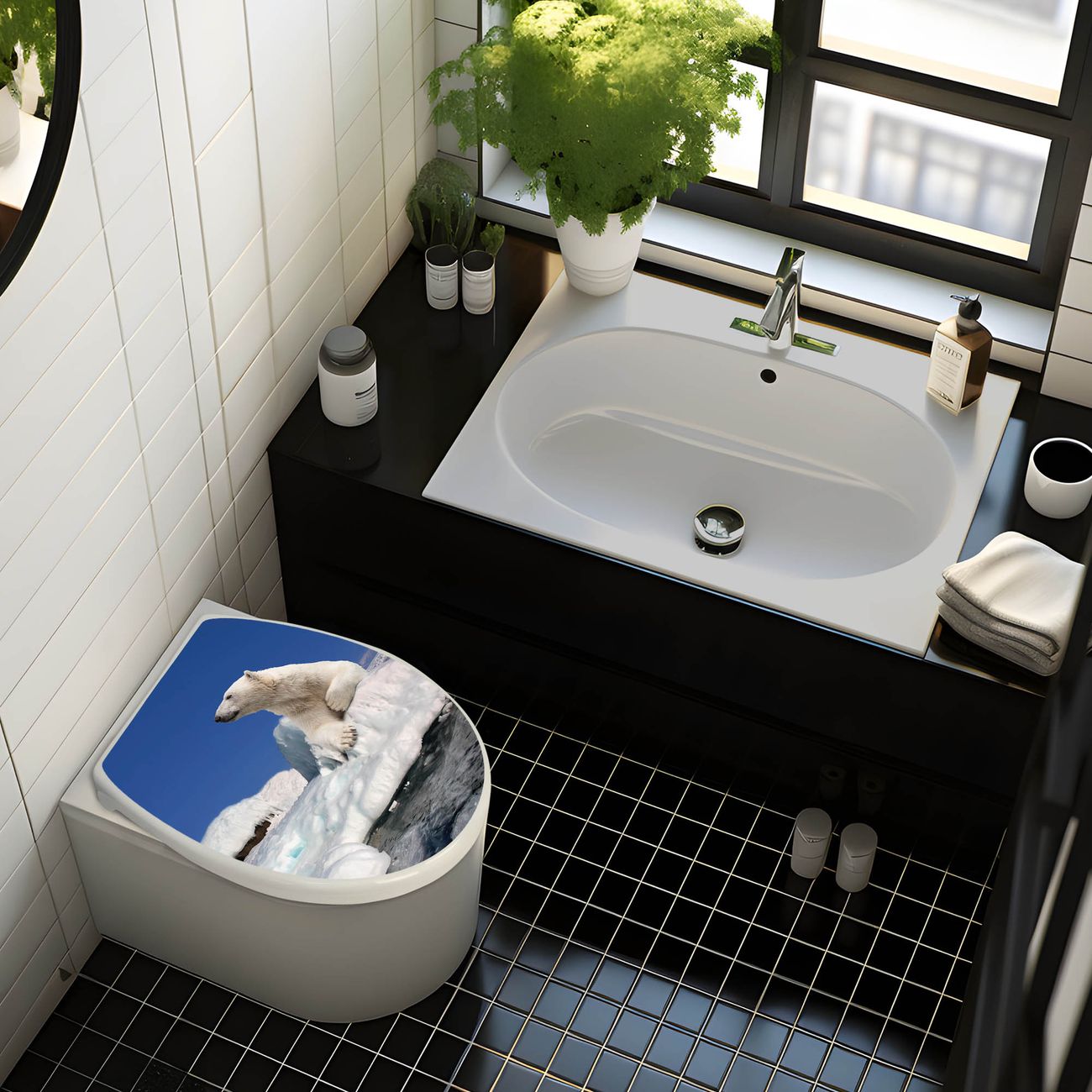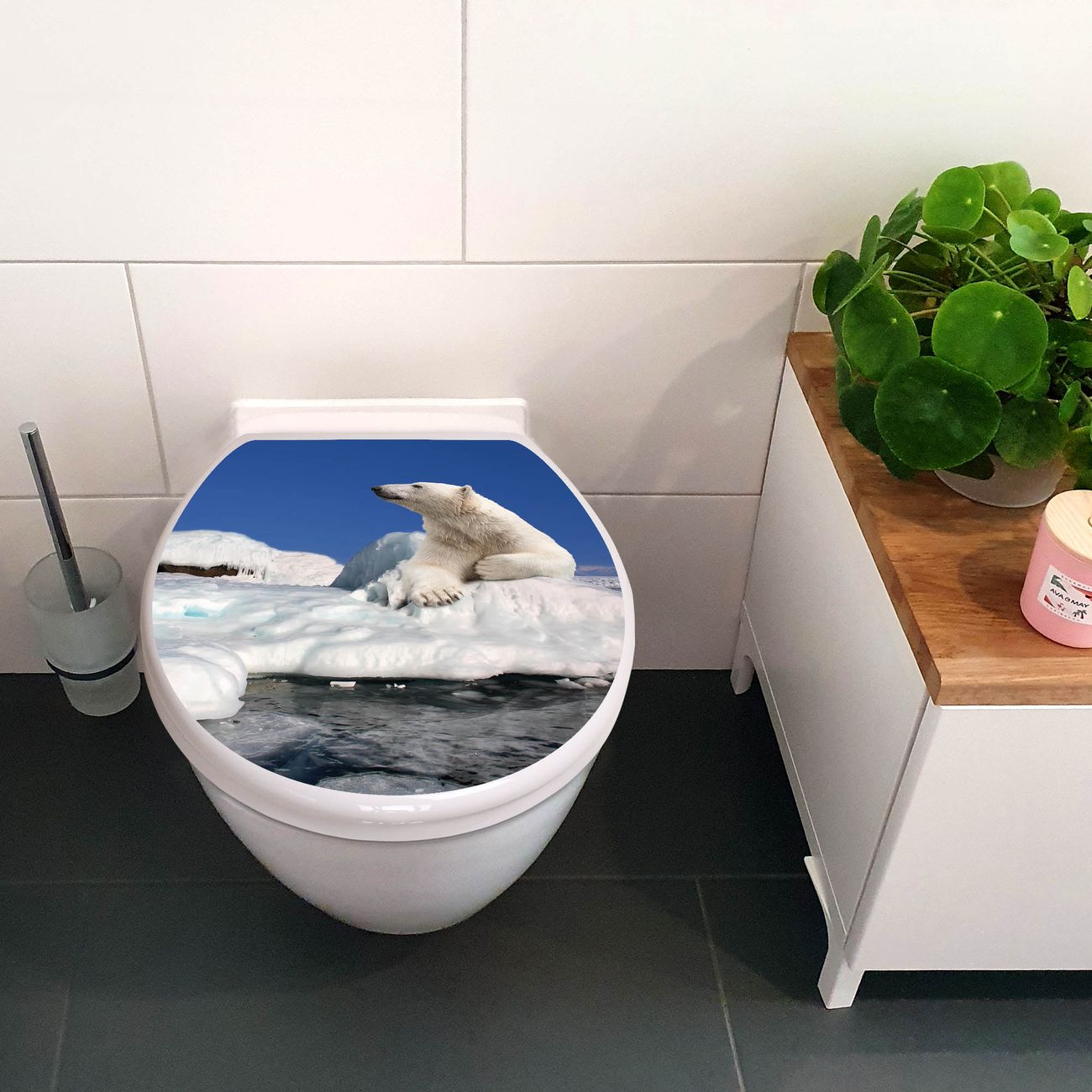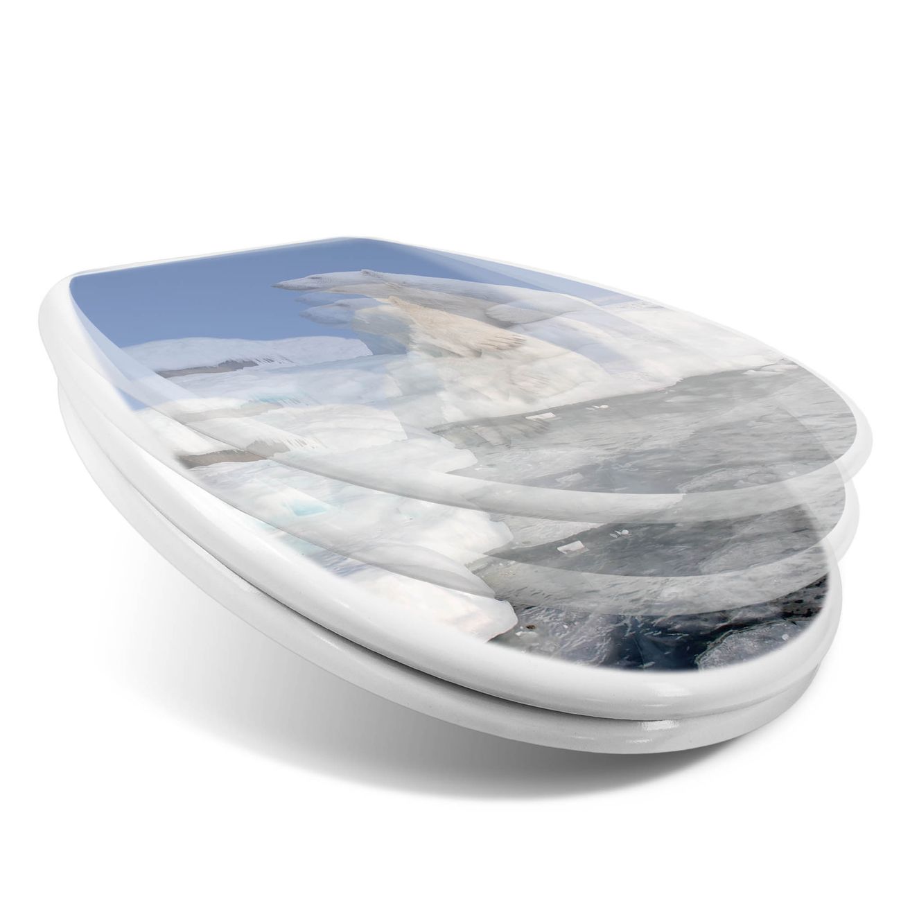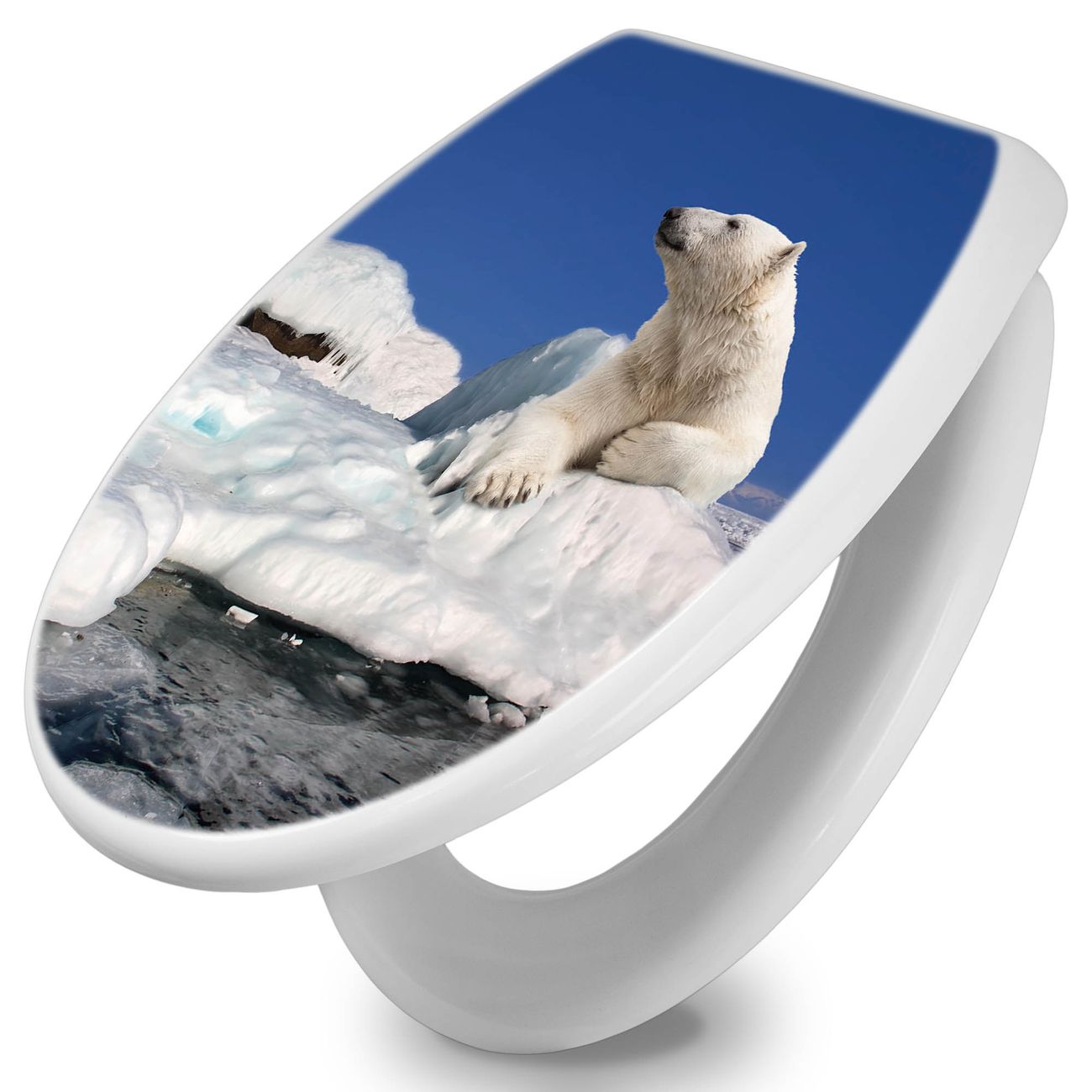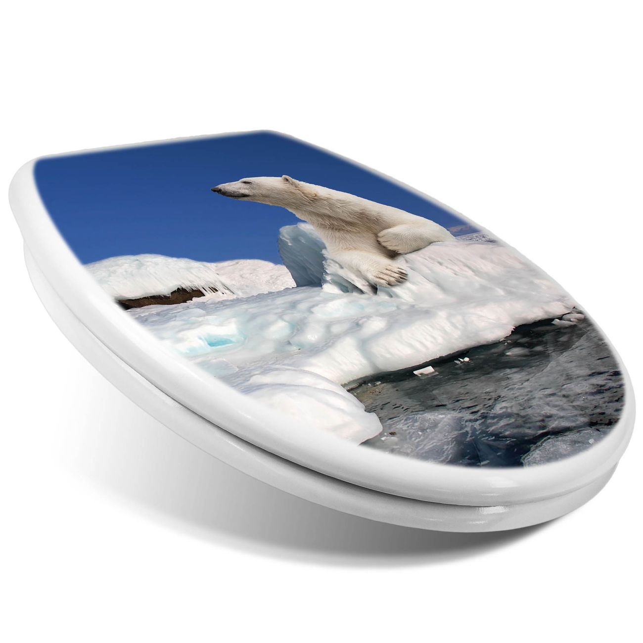 Toilettendeckel weiß mit Absenkautomatik Motiv Ruhender Eisbär