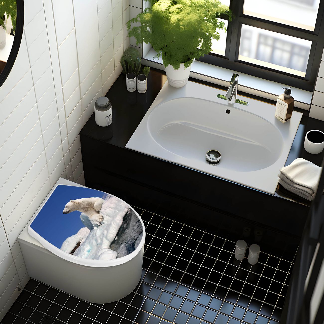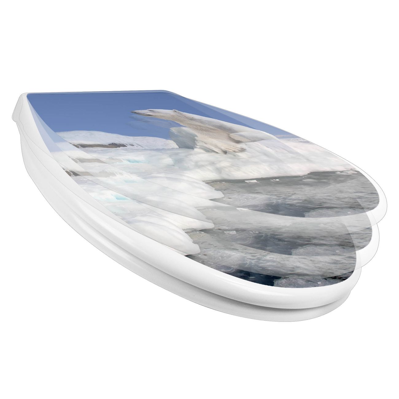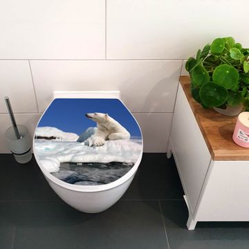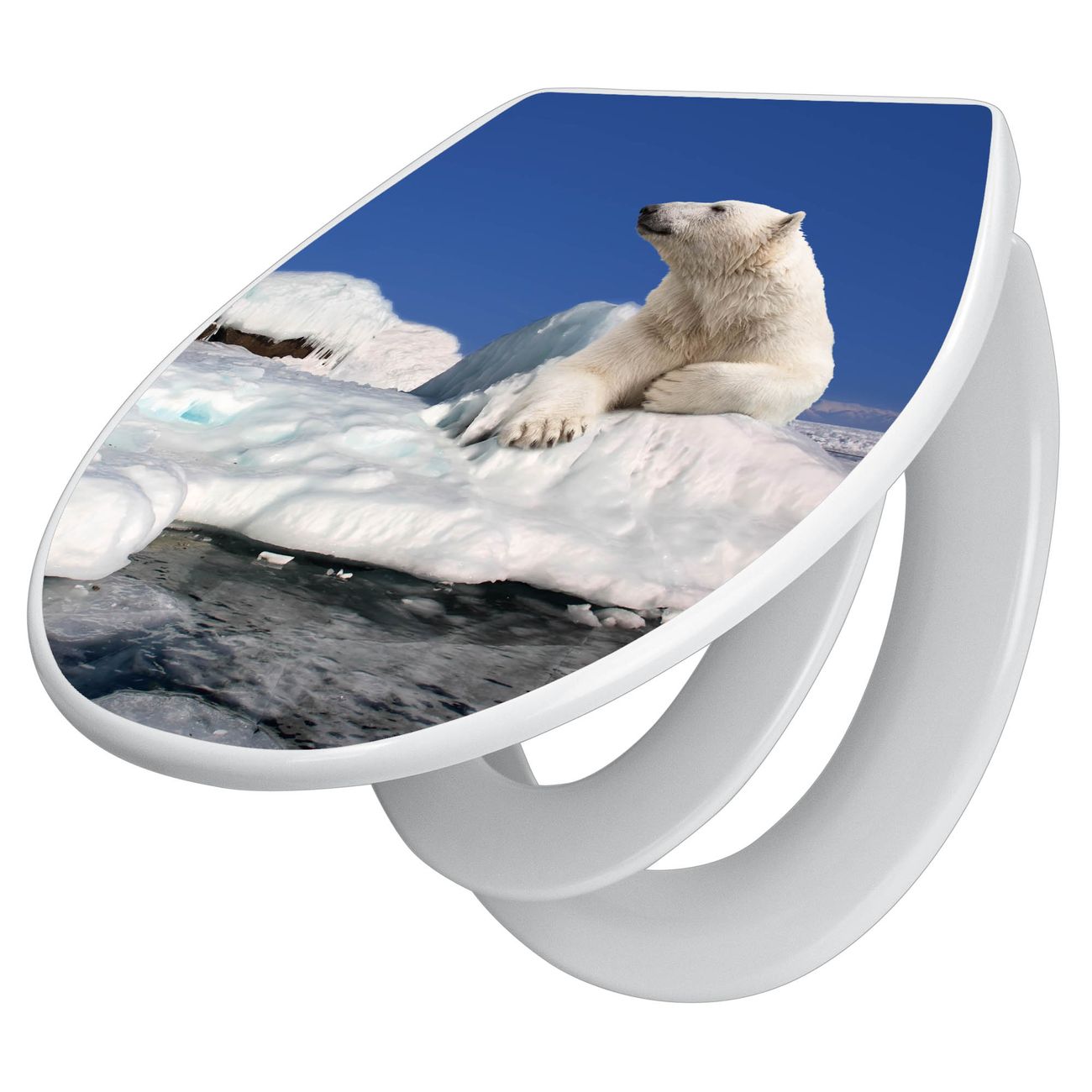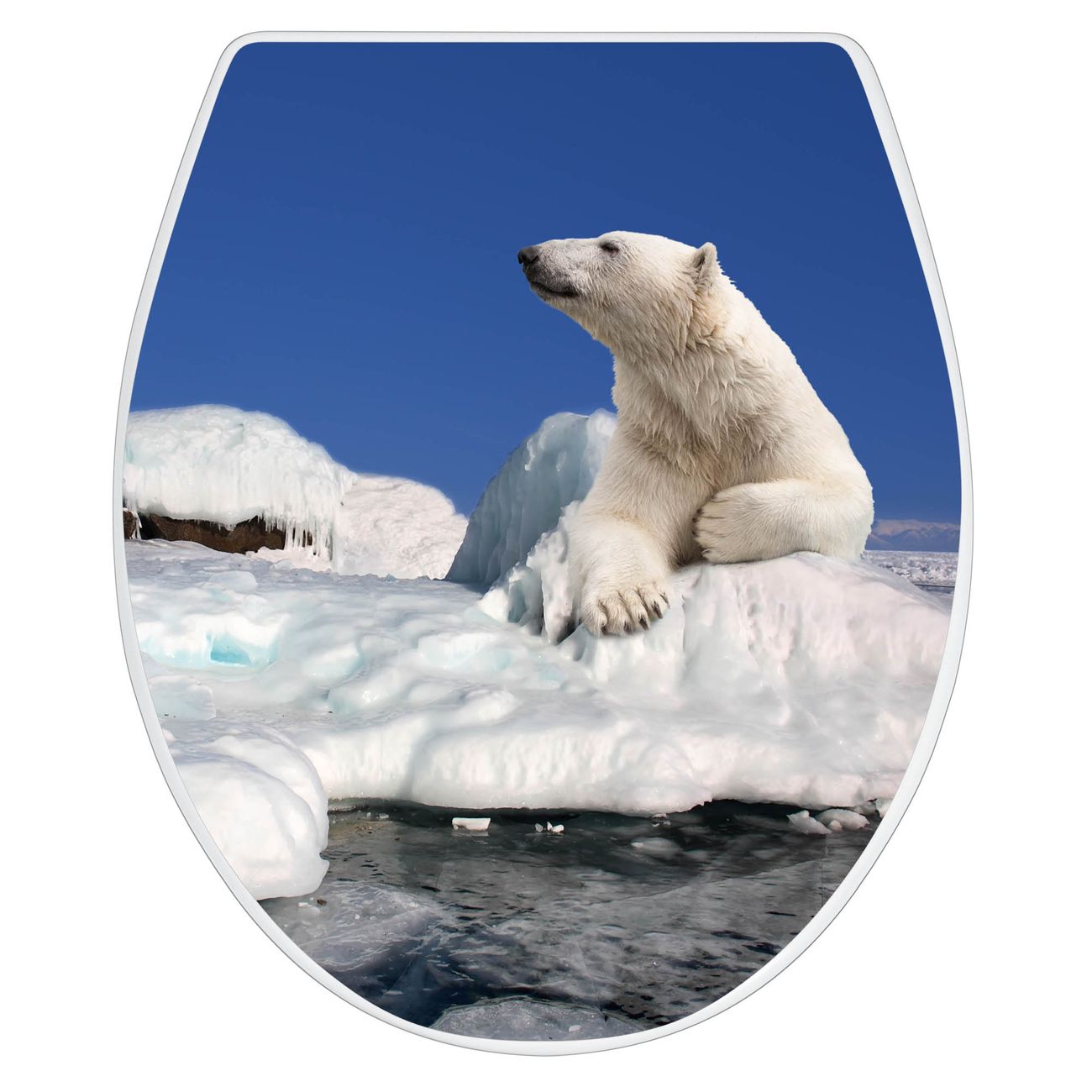 Toilettendeckel weiß mit Absenkautomatik Motiv Ruhender Eisbär