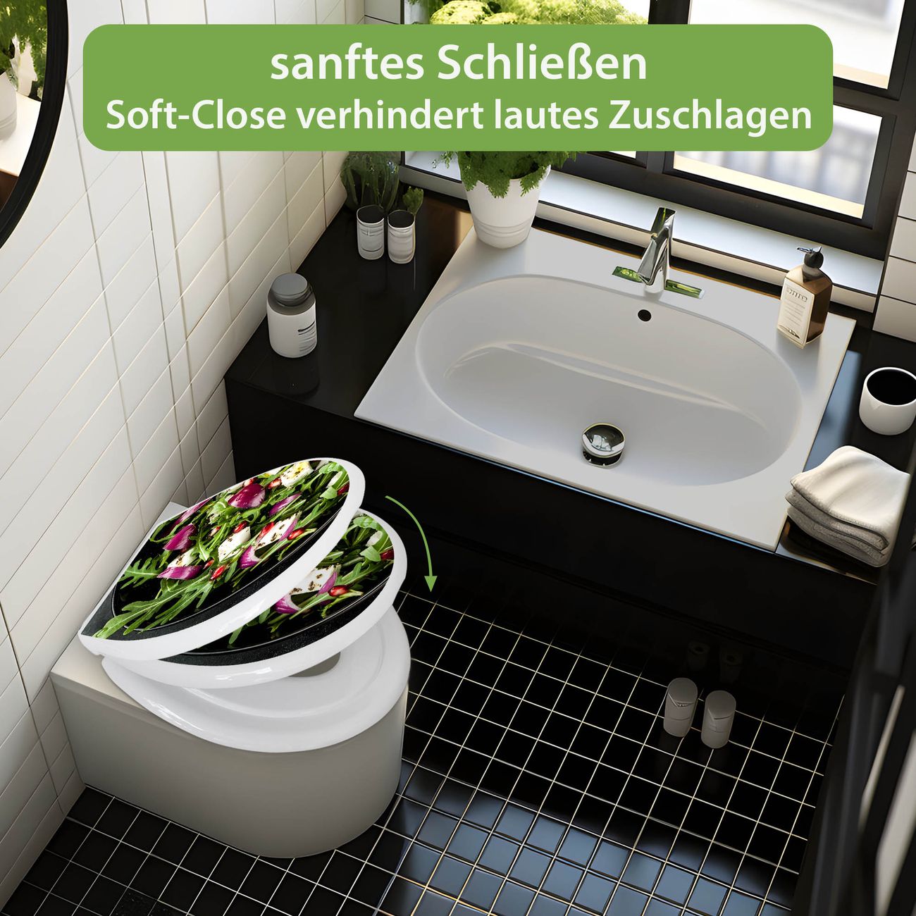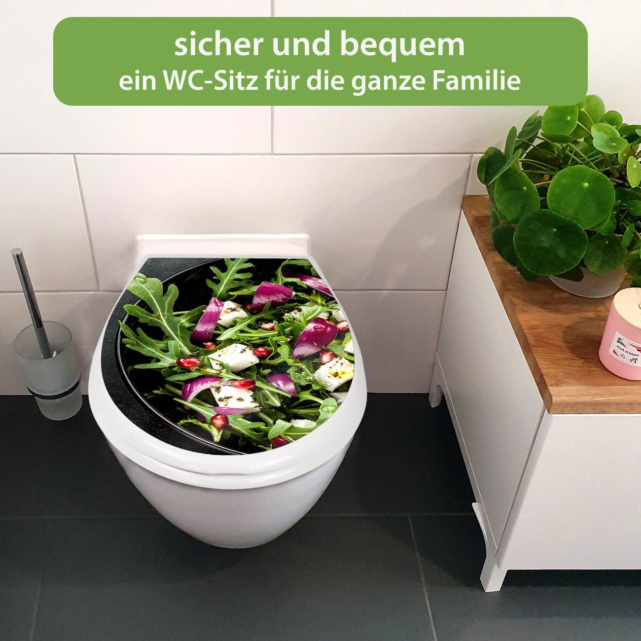 Toilettendeckel weiß mit Absenkautomatik Motiv Salat