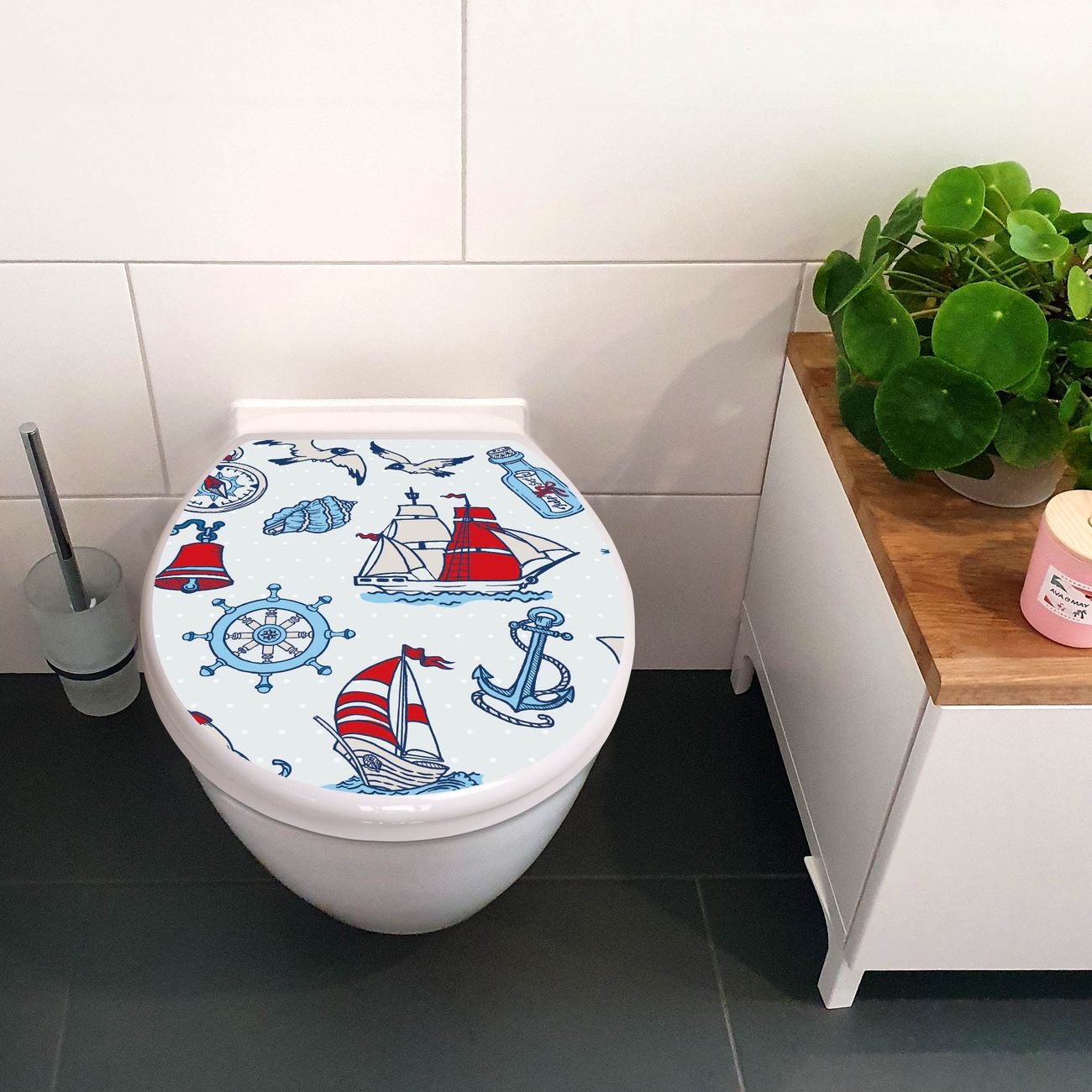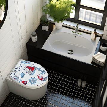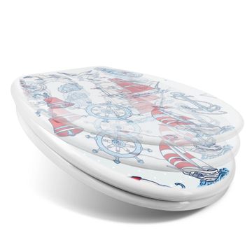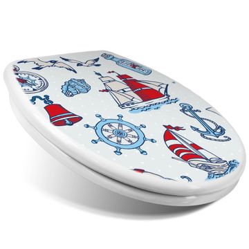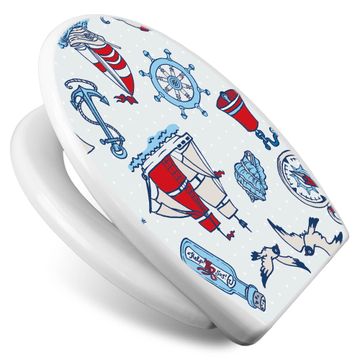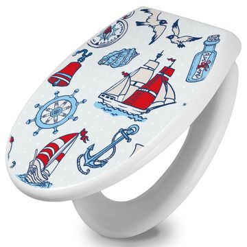 Toilettendeckel weiß mit Absenkautomatik Motiv Schiff Ahoj