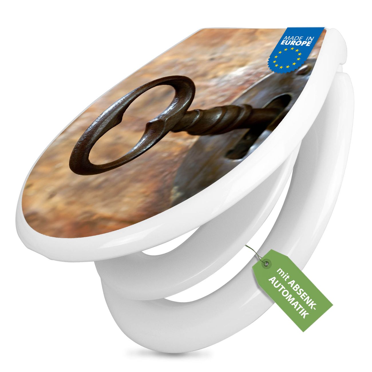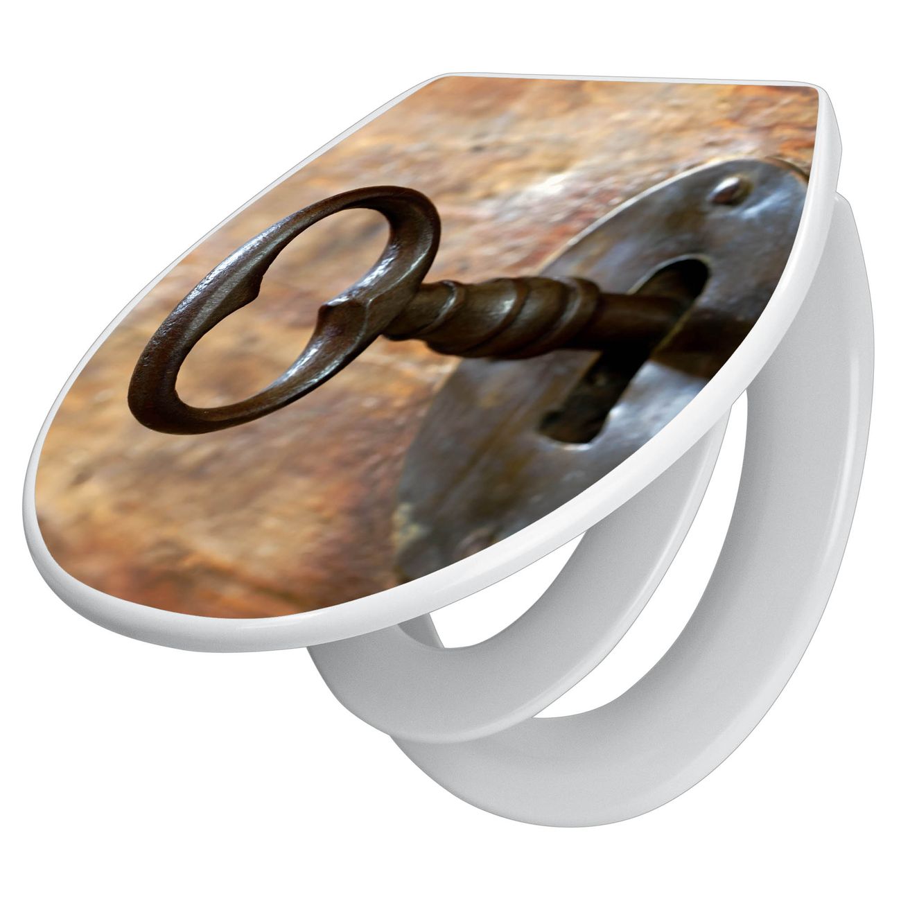 Toilettendeckel weiß mit Absenkautomatik Motiv Schlüssel