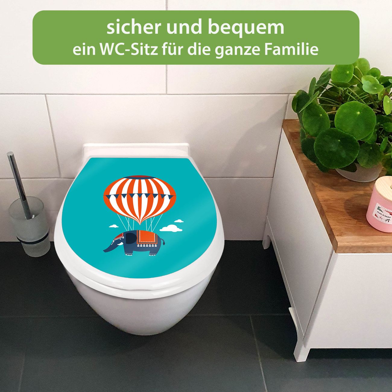 FUNKTION:Mit dem banjado Familien WC Sitz mit Absenkautomatik und dem Motiv Motiv Schwerelos verbinden Sie Design mit Funktionalität. Sie erhalten den Toilettendeckel in bewährt guter Qualität mit Montagematerial passend auf alle Euro-WC-Becken. Die Gesamtgröße beträgt 37,1cm x 44,9cm x 5cm, die Grundfarbe ist weiß.</p> DESIGN:Der Klodeckel in weiß mit Motiv Motiv Schwerelos hat eine ansprechende Optik, eine besondere Form und ist sehr stabil. Das Motiv besteht aus einer farbbrillianten Motivfolie, die durch ein Schutzlaminat zusätzlich vor Kratzern schützt. Der integrierte Kindersitz fügt sich harmonisch ein. DETAILS:Der Toilettensitz mit Soft Close besteht aus hochwertigem Polypropylen, ist geruchlos, ungiftig und kann mit handelsüblicher Seife gereinigt werden. Die Montage kann von von oben oder von unten erfolgen und ist kinderleicht. NUTZEN:Mit Hilfe der detaillierten Aufbauanleitung ermöglichen wir eine schnelle und unkomplizierte Montage. Die banjado Klobrille ist universell geeignet für alle Euro-WC-Schüsseln. Der Kindersitz kann unkompliziert entfernt werden. BANJADO:Ihr WC-Deckel wird in Sachsen in einer kleinen Manufaktur von Hand veredelt. Die Motivfolie ist lösungsmittelfrei und schutzlaminiert für einen langen Halt. Wir wünschen viel Freude bei der Auswahl eines schönen Motivs.