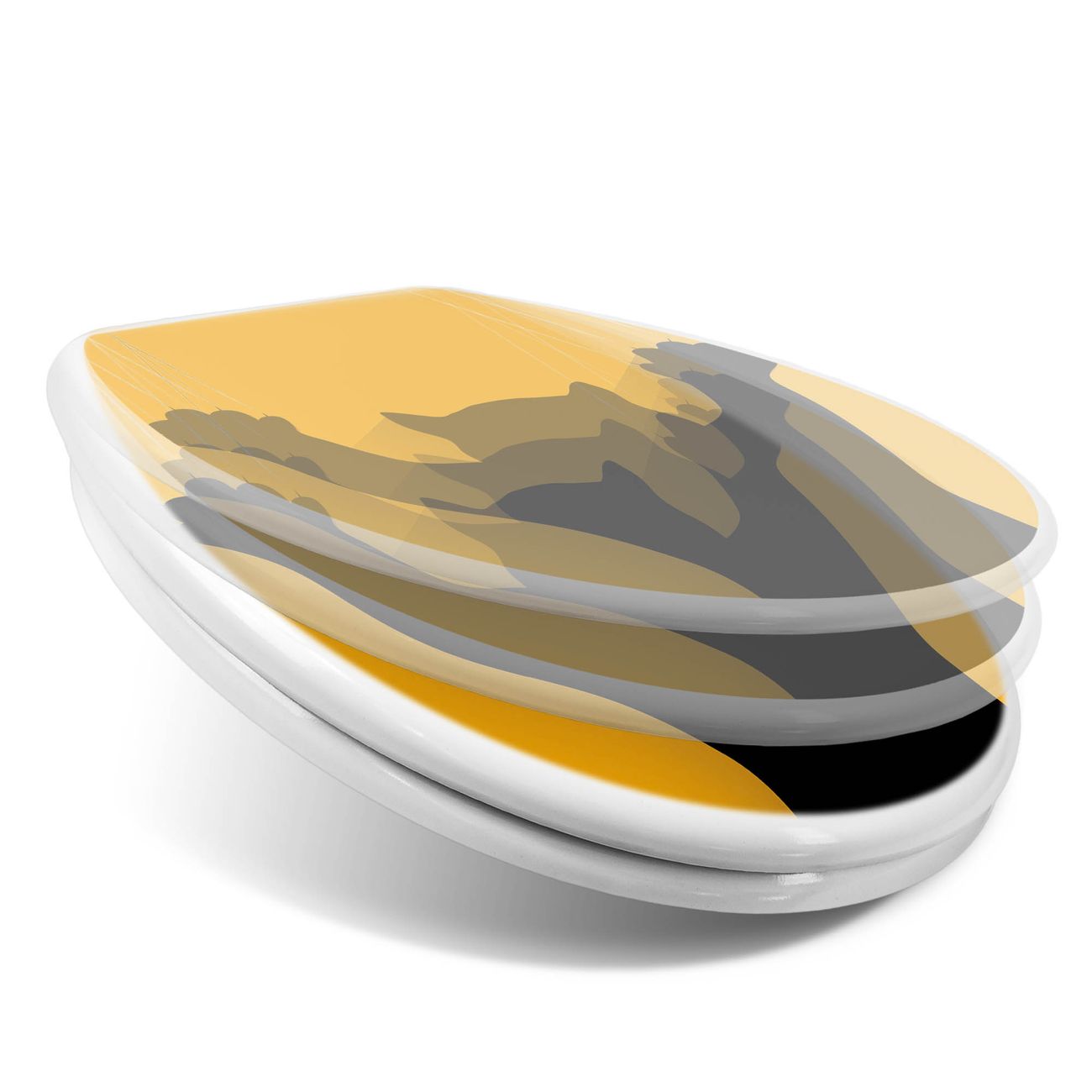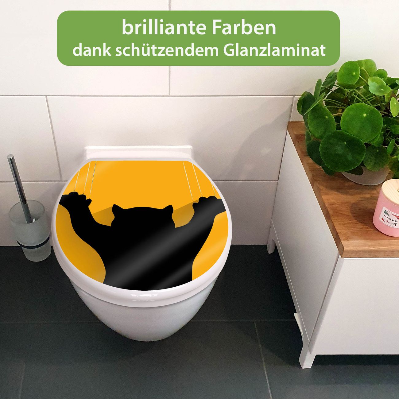 FUNKTION: Mit dem banjado Toilettendeckel mit Absenkautomatik verbinden Sie Design mit Funktionalität. Sie erhalten den WC Sitz in bewährt guter Qualität mit Edelstahl Scharnieren und Montagematerial. DESIGN: Der Klodeckel hat eine ansprechende Optik, eine besondere Form und ist sehr stabil. Das Motiv besteht aus einer farbbrillianten Motivfolie, die durch ein Schutzlaminat zusätzlich vor Kratzern schützt. DETAILS: Der Toilettensitz besteht aus Duroplast, die Scharniere sind aus hochwertigem Edelstahl, Materialien die Ihnen eine leichte und hygienische Reinigung ermöglichen. Die Gesamtgröße beträgt 37,3cm x 45cm x 5cm, die Grundfarbe ist weiß. NUTZEN: Mit Hilfe der detaillierten Aufbauanleitung ermöglichen wir eine schnelle und unkomplizierte Montage. Die banjado Klobrille ist universell geeignet für alle gängigen WC Schüsseln. Der Lochabstand zur Befestigung kann variable eingestellt werden. BANJADO: Ihr WC-Deckel wird in Sachsen in einer kleinen Manufaktur von Hand veredelt. Die Motivfolie ist lösungsmittelfrei und schutzlaminiert, für einen langen Halt. Wir wünschen viel Freude bei der Auswahl eines schönen Motivs.