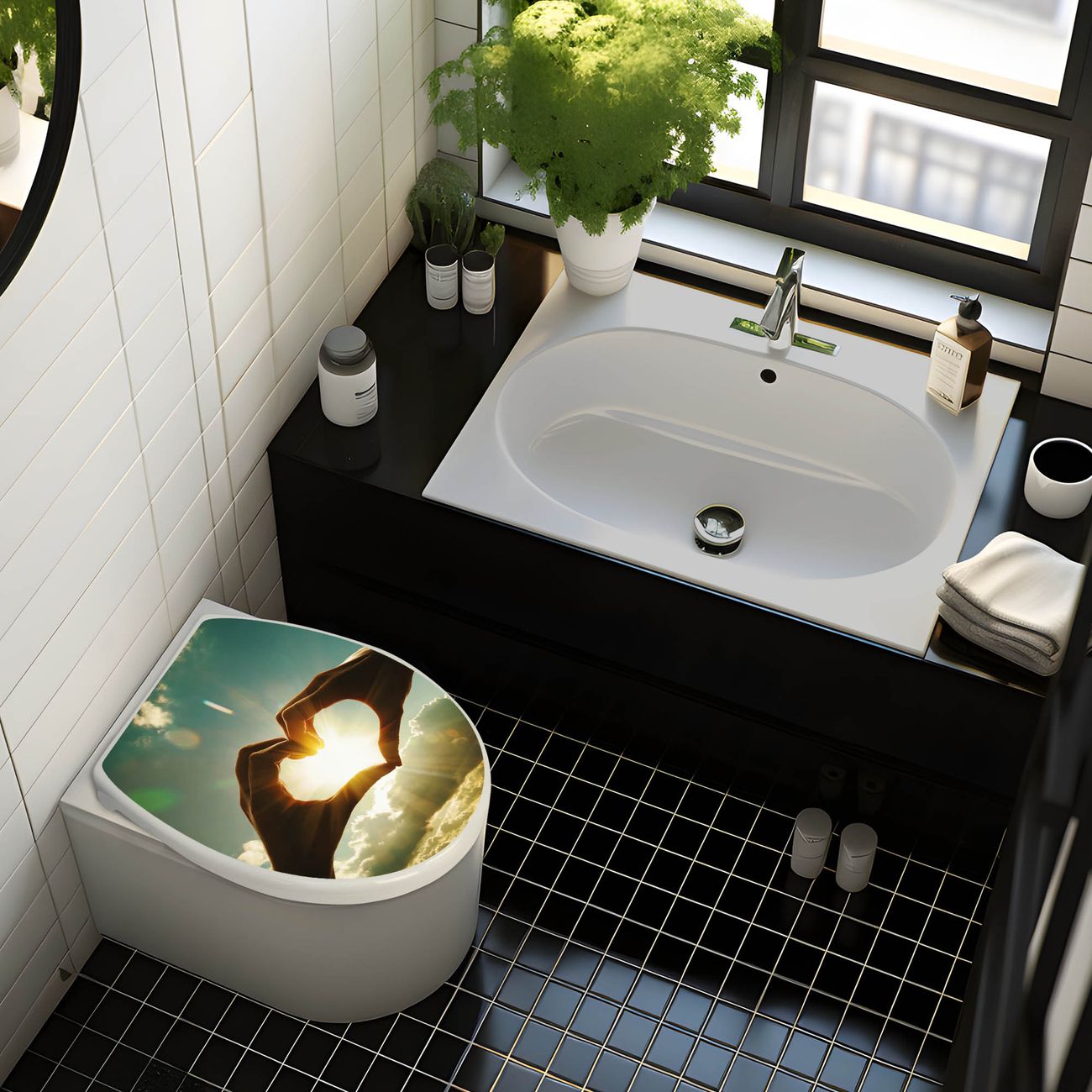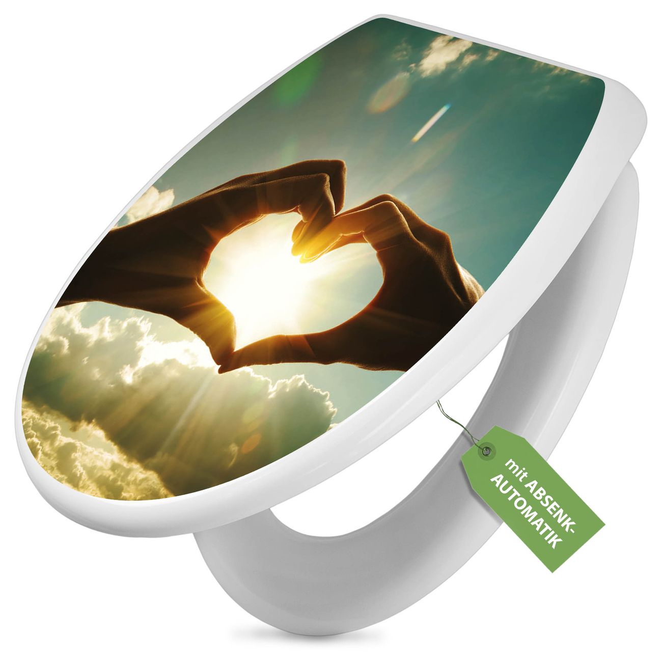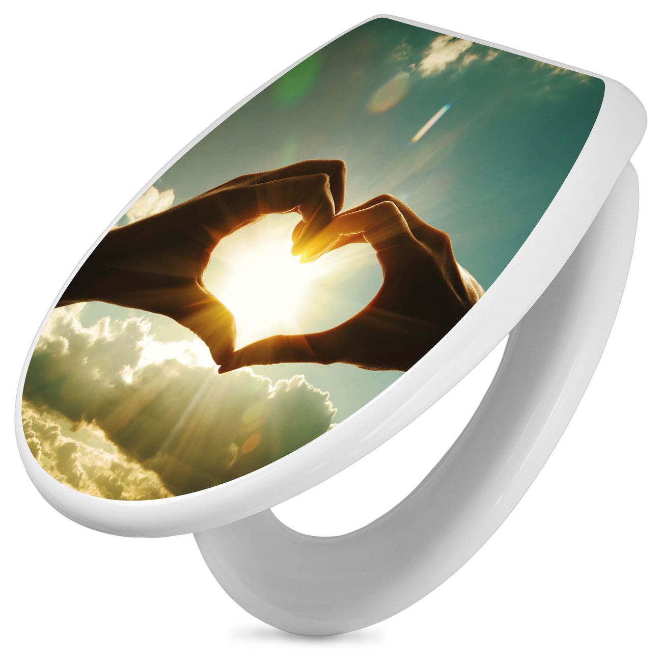 Toilettendeckel weiß mit Absenkautomatik Motiv Sonne im Herzen