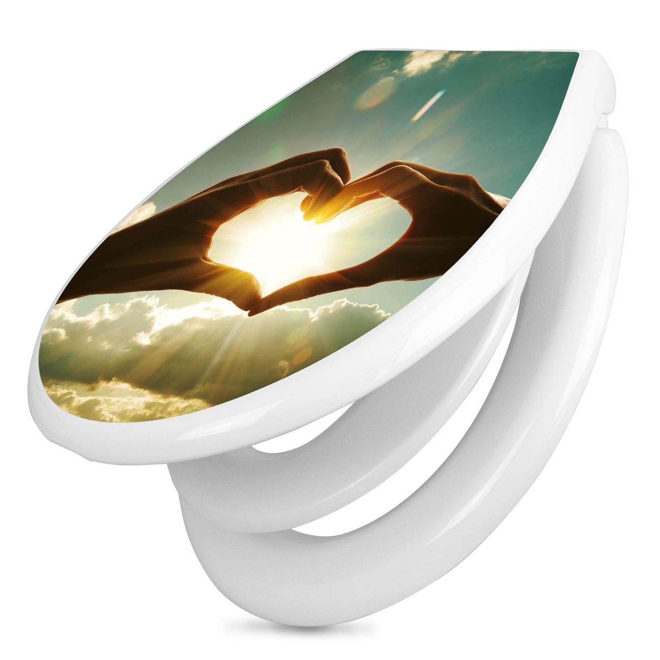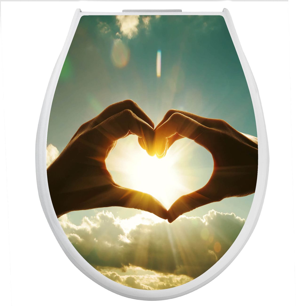 Toilettendeckel weiß mit Absenkautomatik Motiv Sonne im Herzen