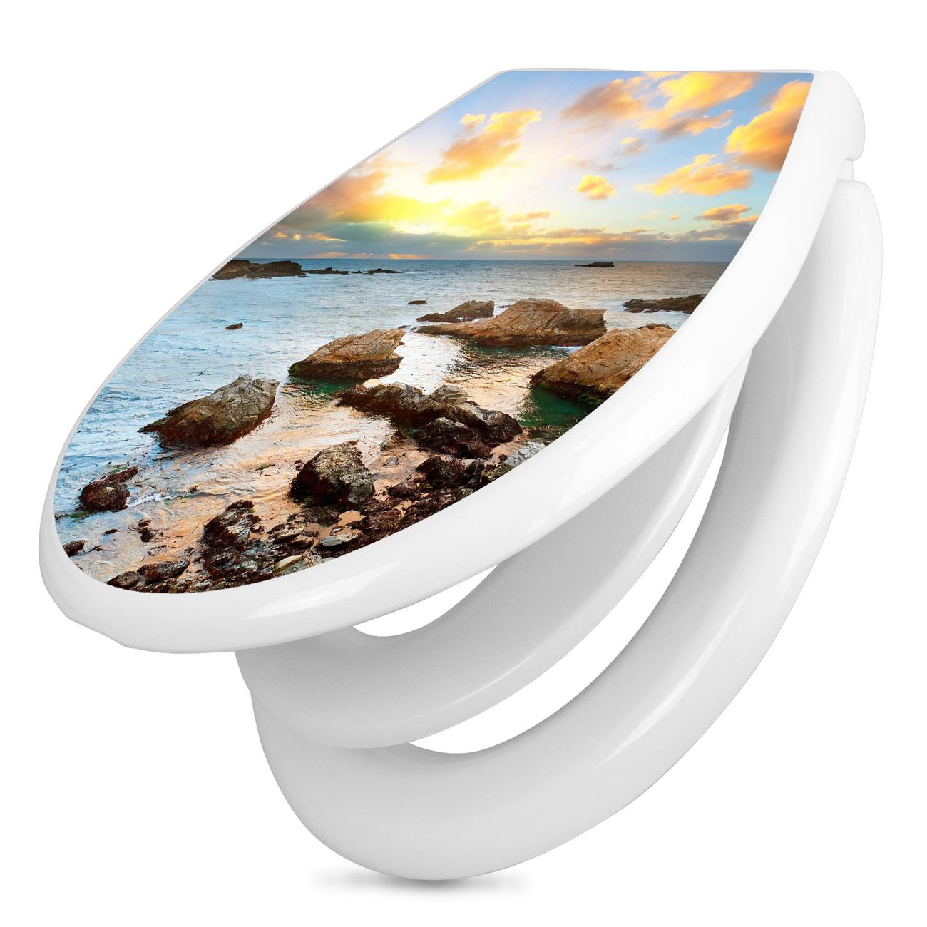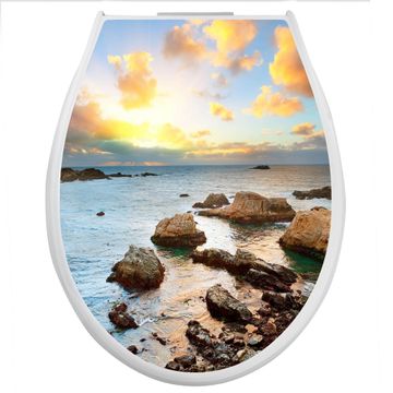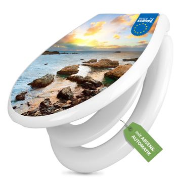 Toilettendeckel weiß mit Absenkautomatik Motiv Sonnenaufgang am Meer