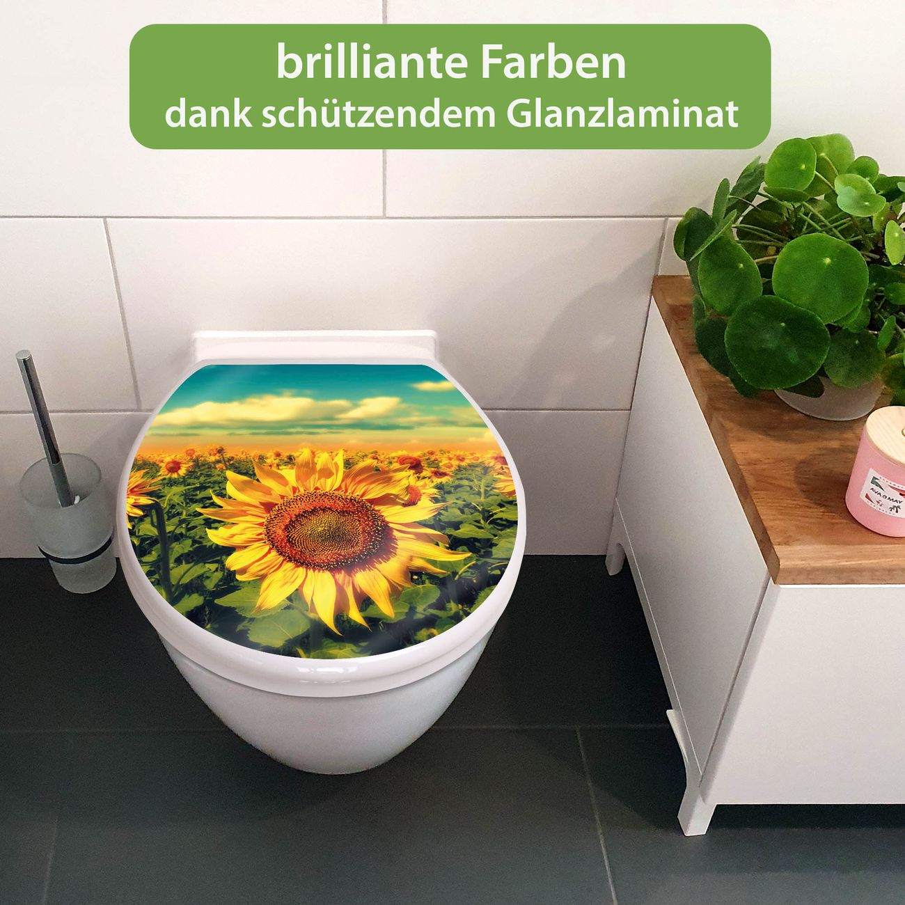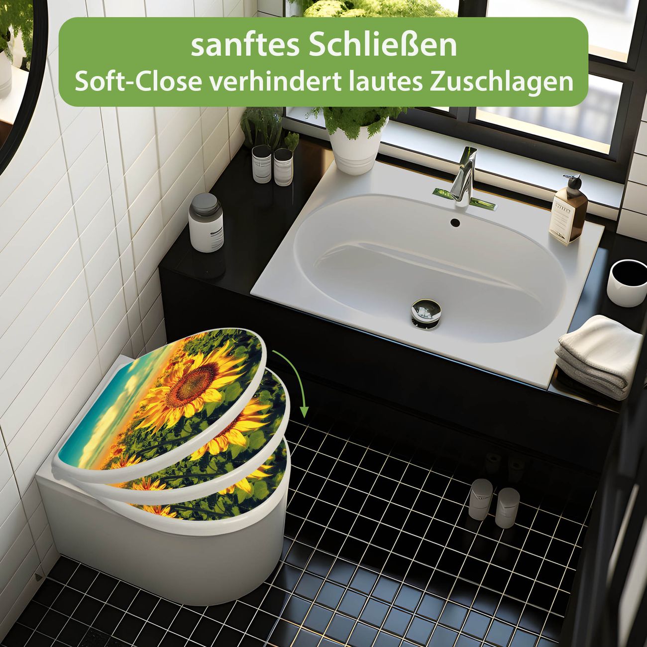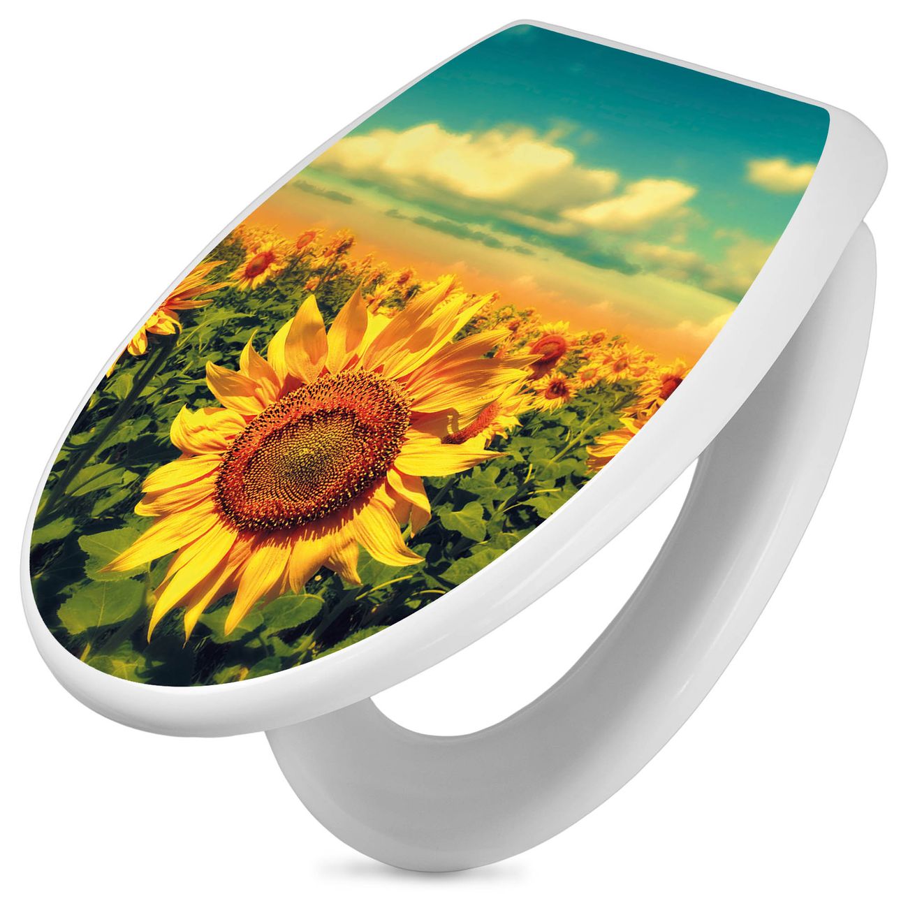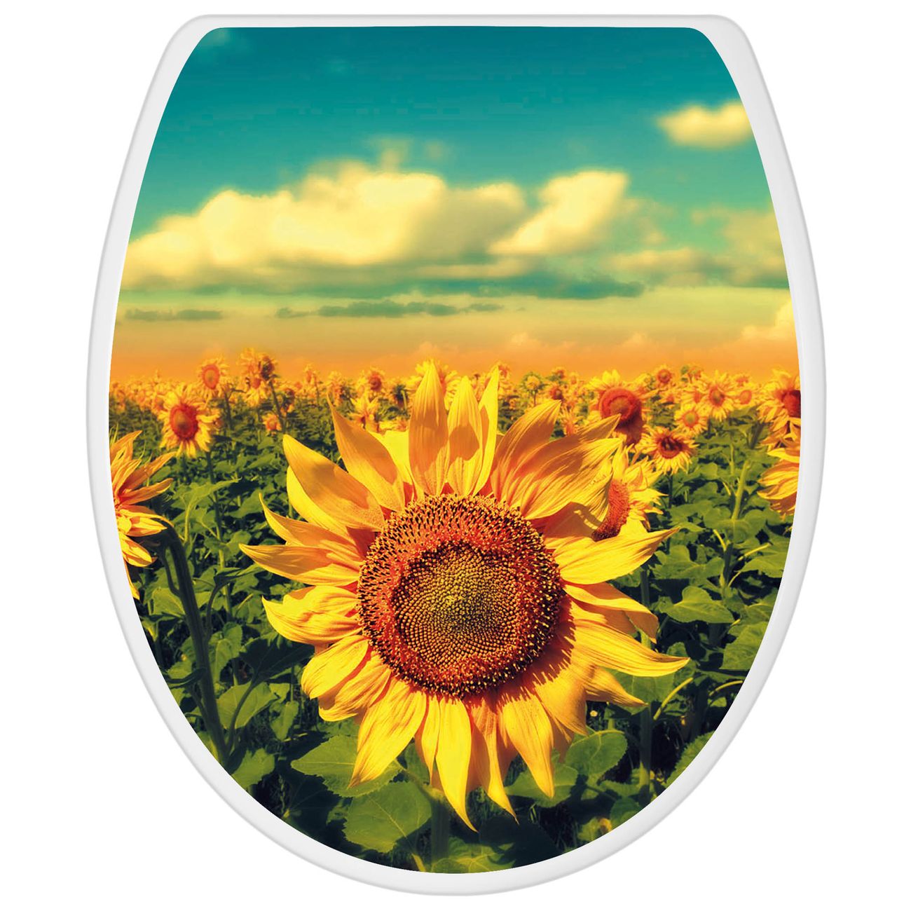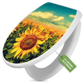 Toilettendeckel weiß mit Absenkautomatik Motiv Sonnenblumen