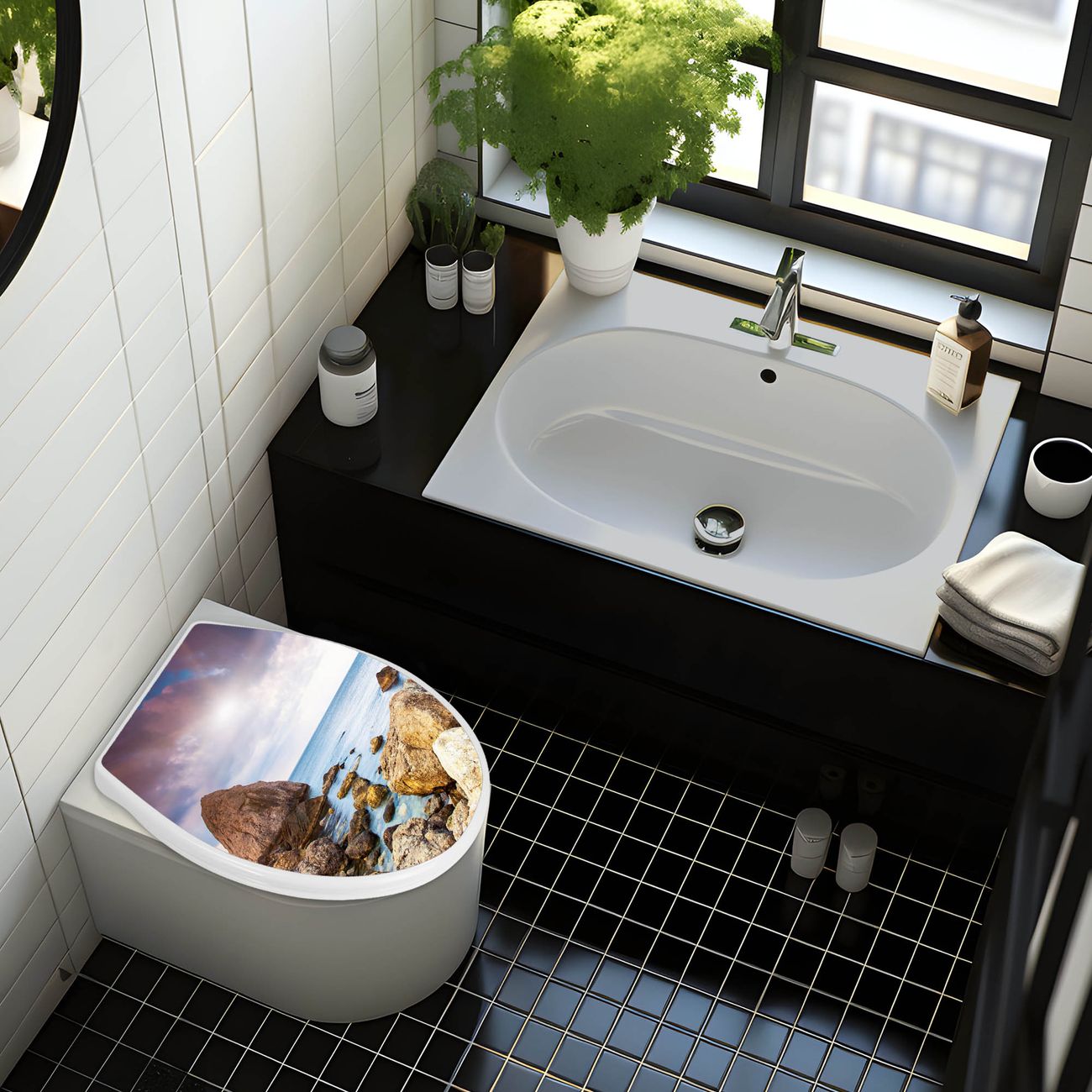 Toilettendeckel weiß mit Absenkautomatik Motiv Steinbucht