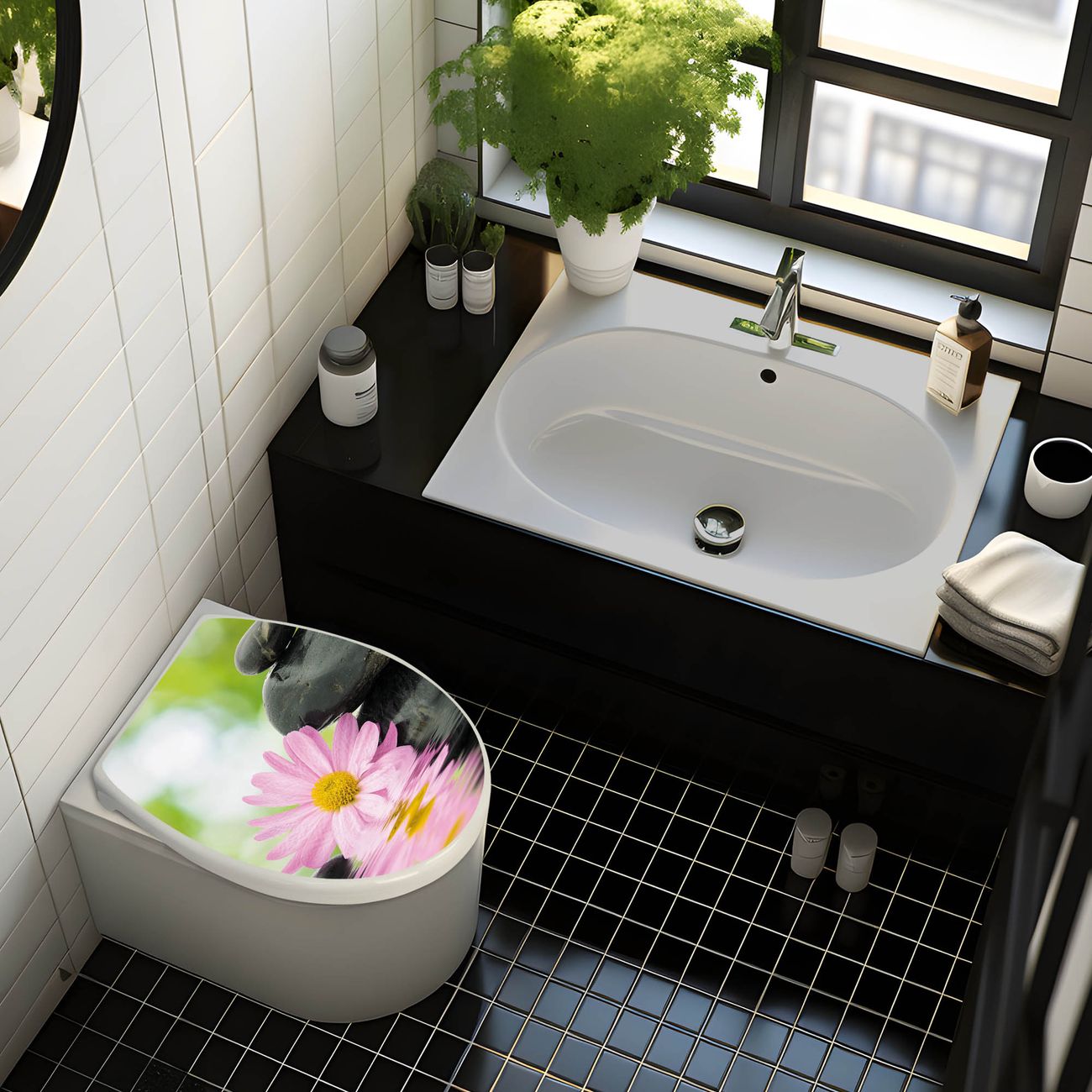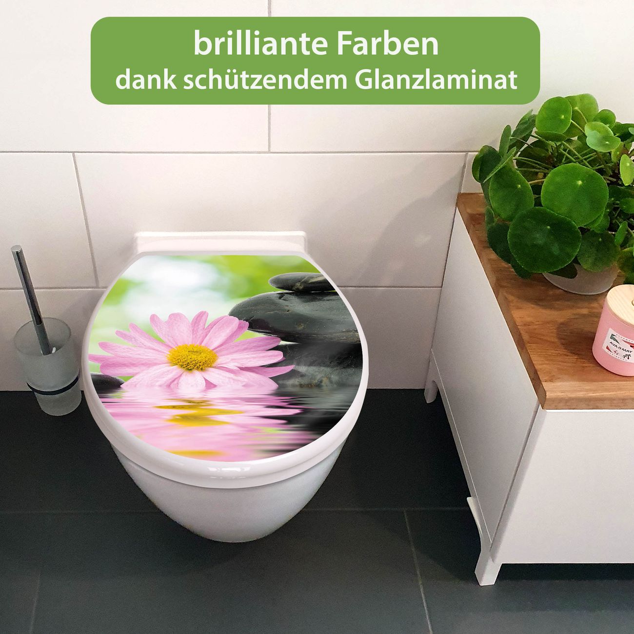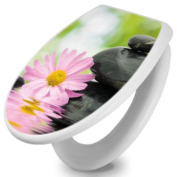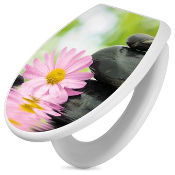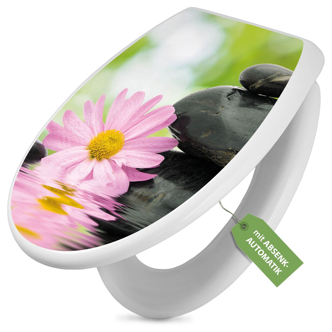 Toilettendeckel weiß mit Absenkautomatik Motiv Steine & Relax 2