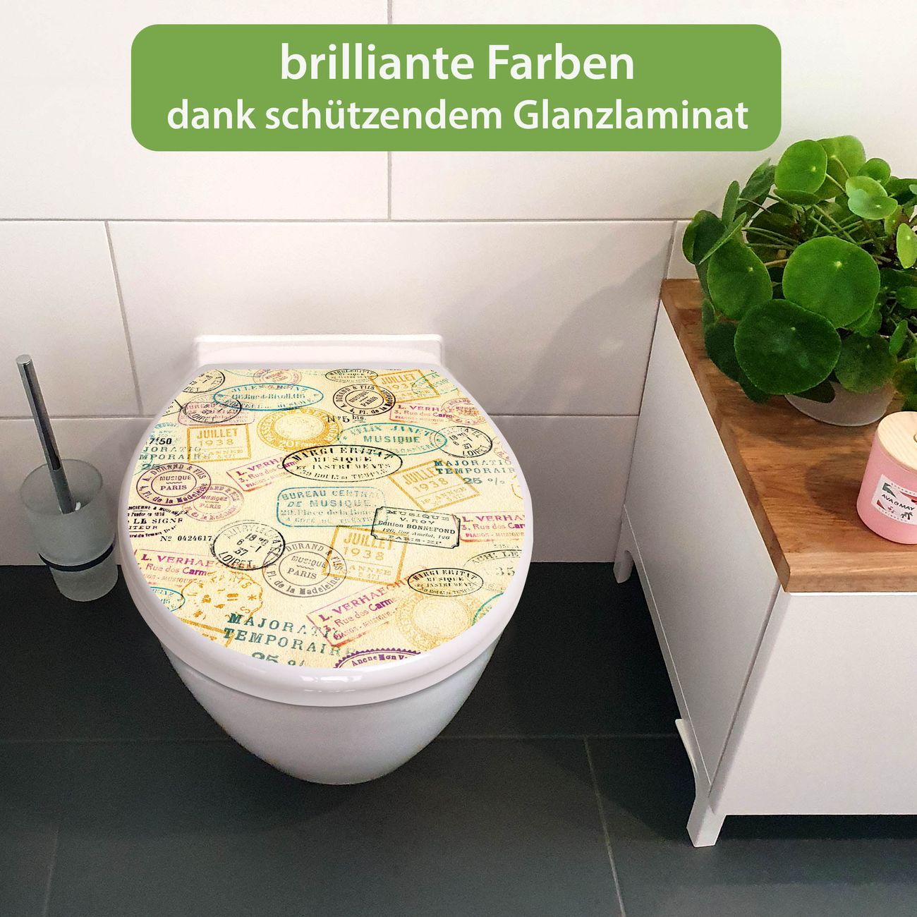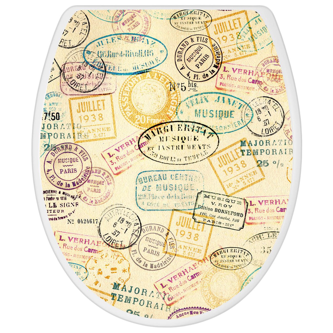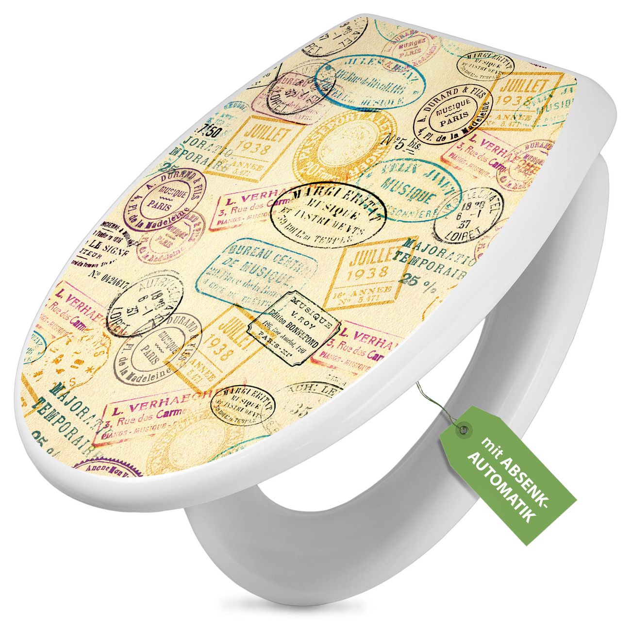 Toilettendeckel weiß mit Absenkautomatik Motiv Stempel
