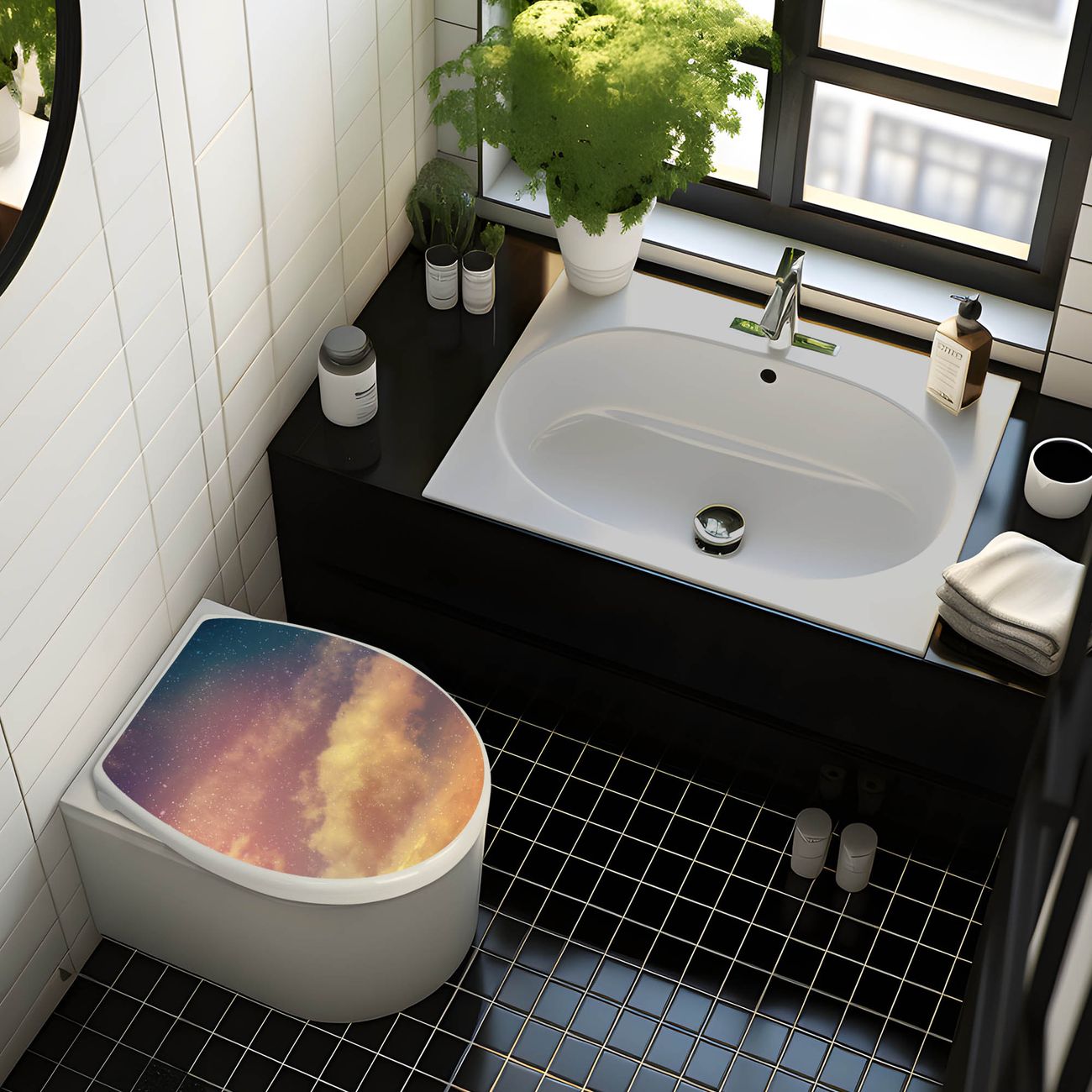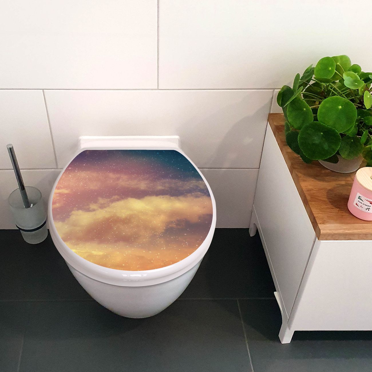 Toilettendeckel weiß mit Absenkautomatik Motiv Sternenhimmel