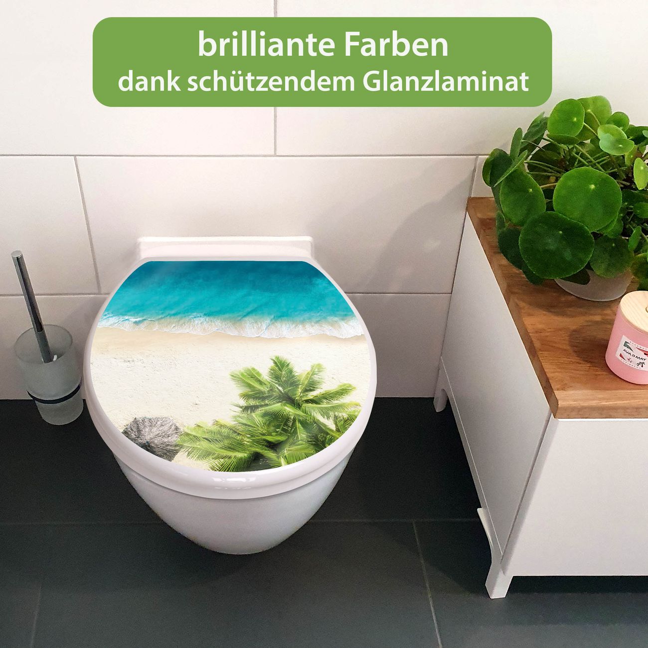 Toilettendeckel weiß mit Absenkautomatik Motiv Strandtag