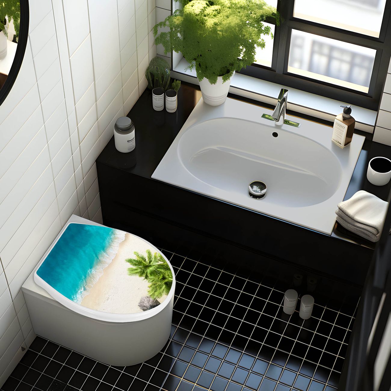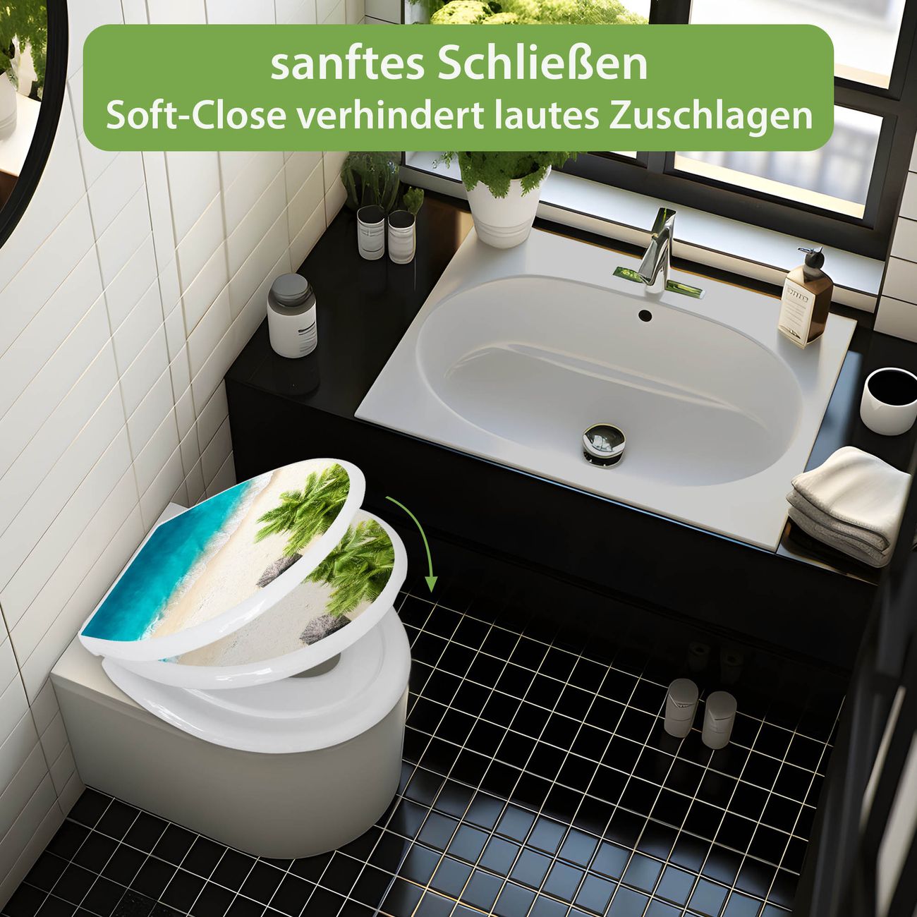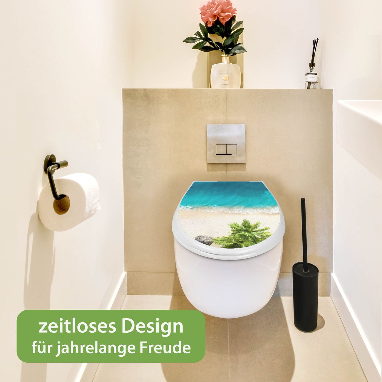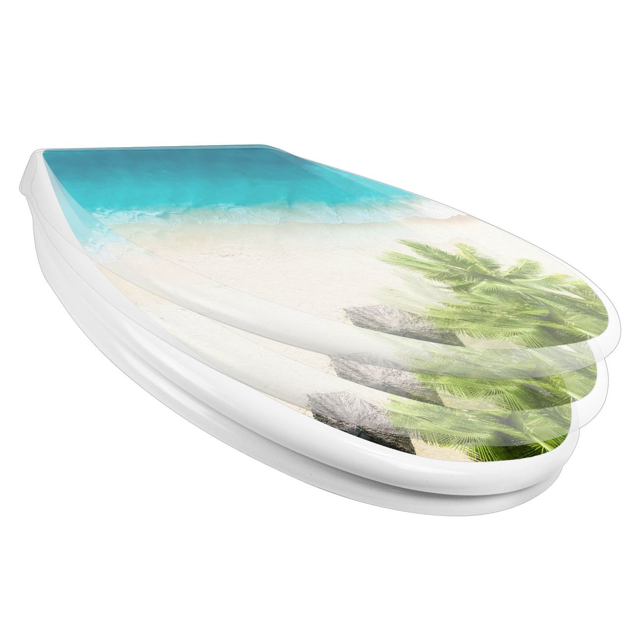Toilettendeckel weiß mit Absenkautomatik Motiv Strandtag