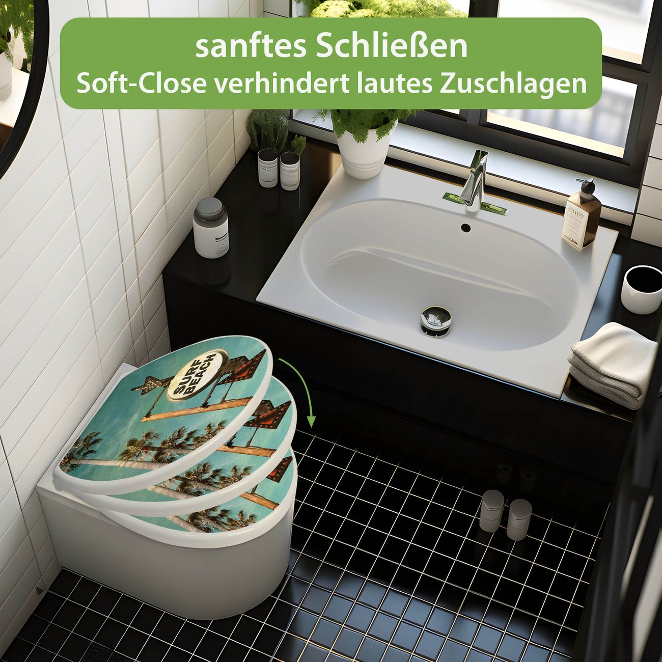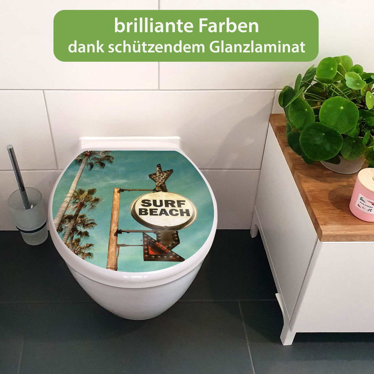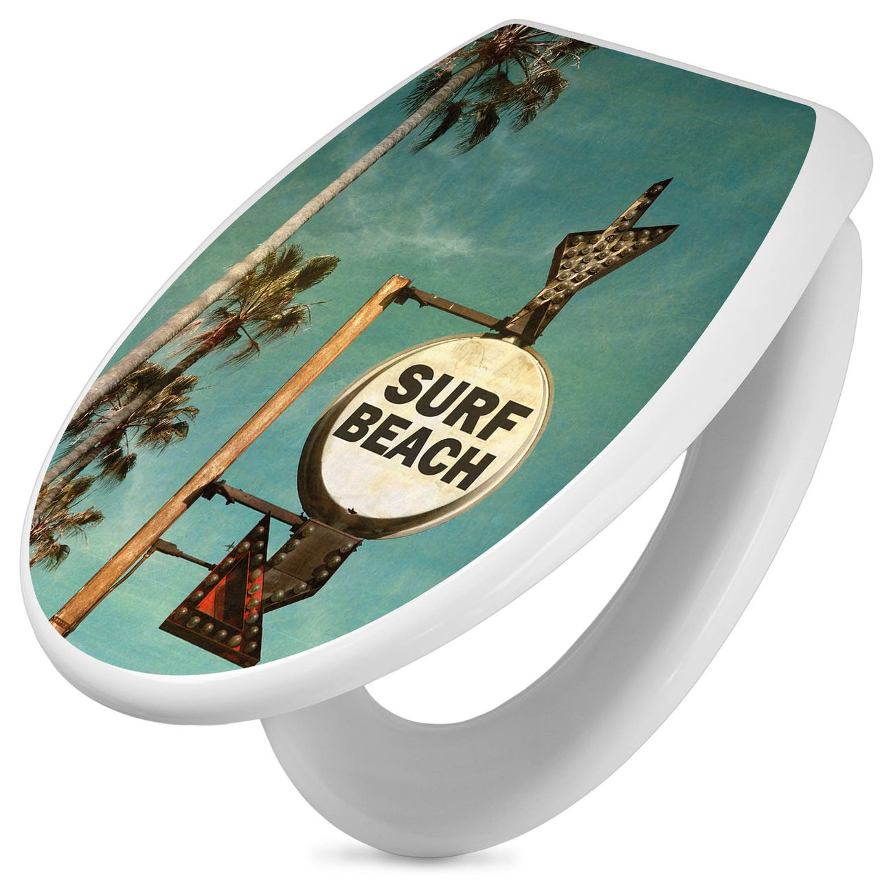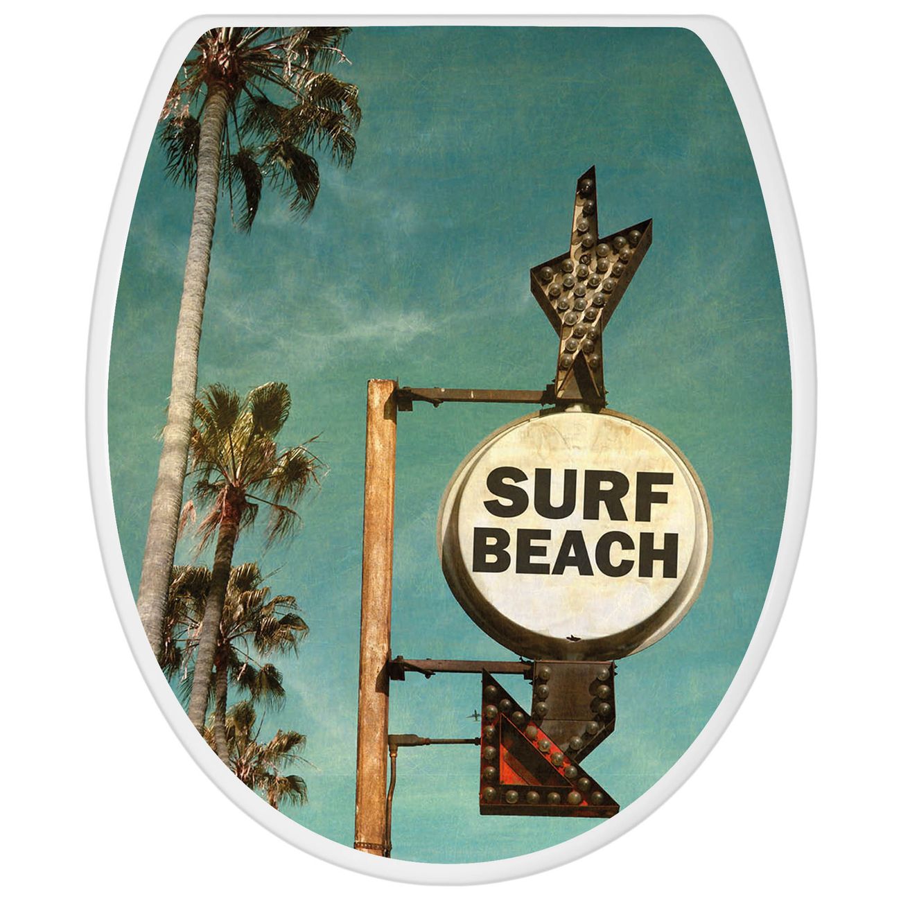 Toilettendeckel weiß mit Absenkautomatik Motiv Surf Beach