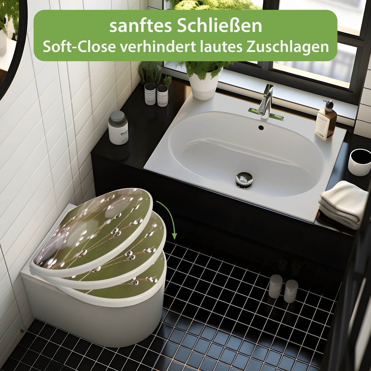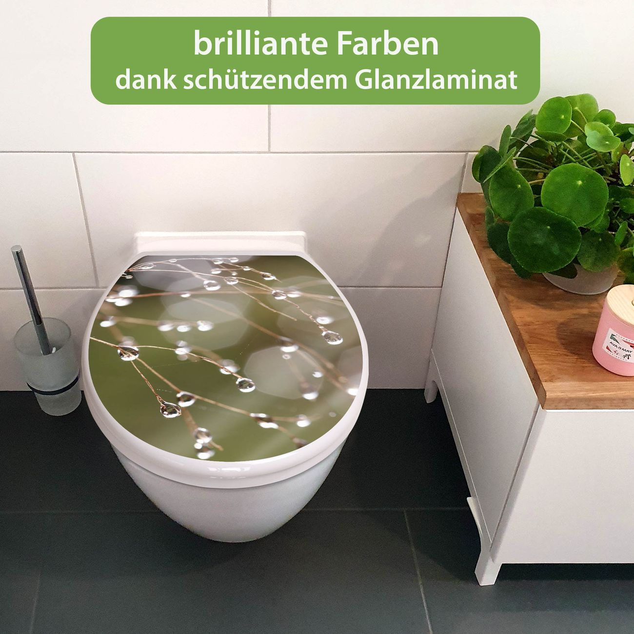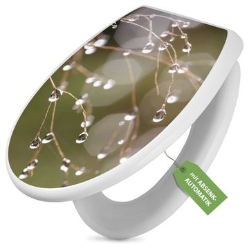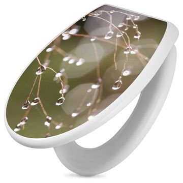 Toilettendeckel weiß mit Absenkautomatik Motiv Tau Auf Zweigen