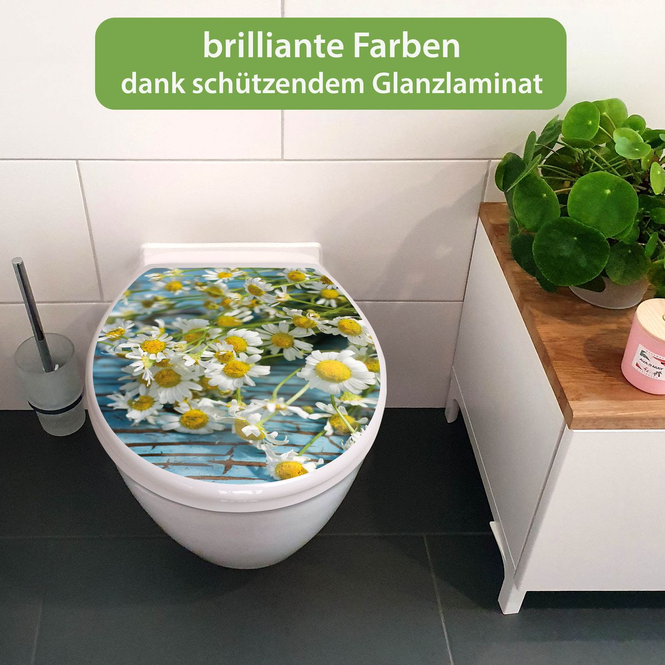 Toilettendeckel weiß mit Absenkautomatik Motiv Tausendschön