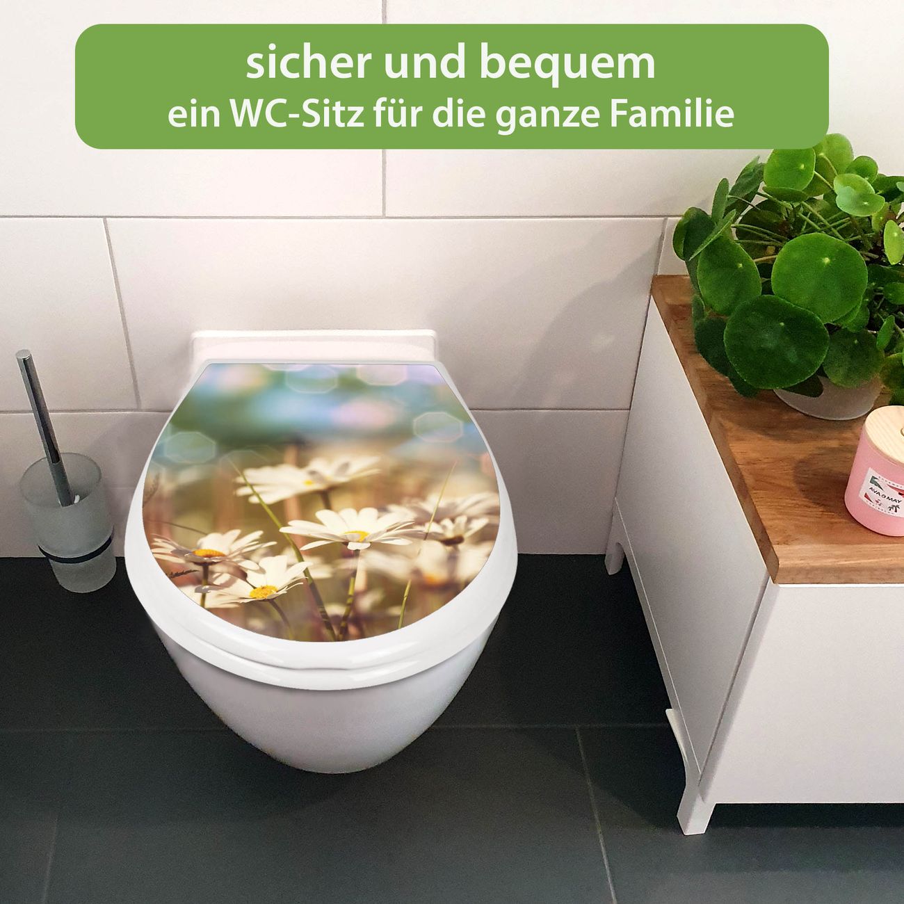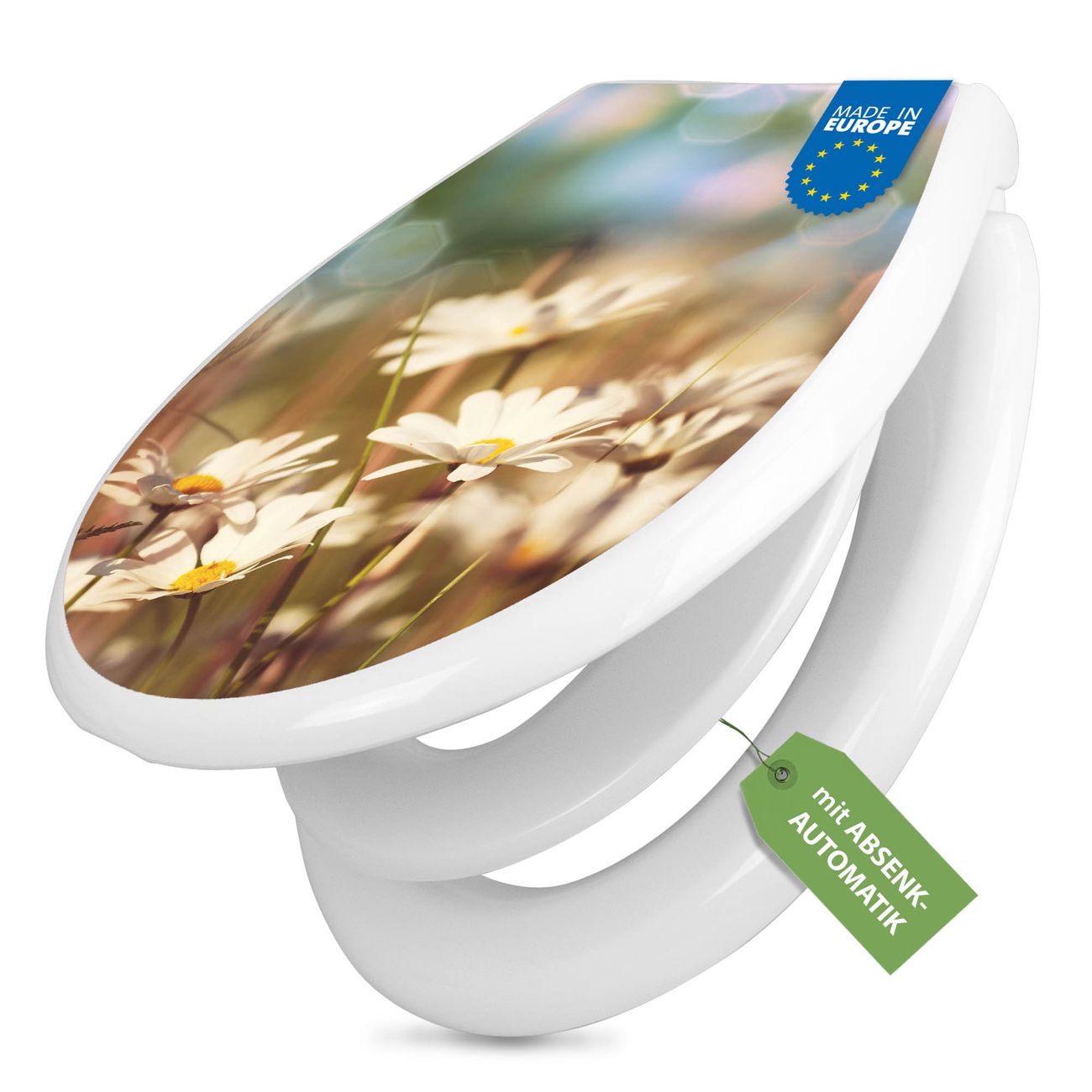 Toilettendeckel weiß mit Absenkautomatik Motiv Tausendschönwiese