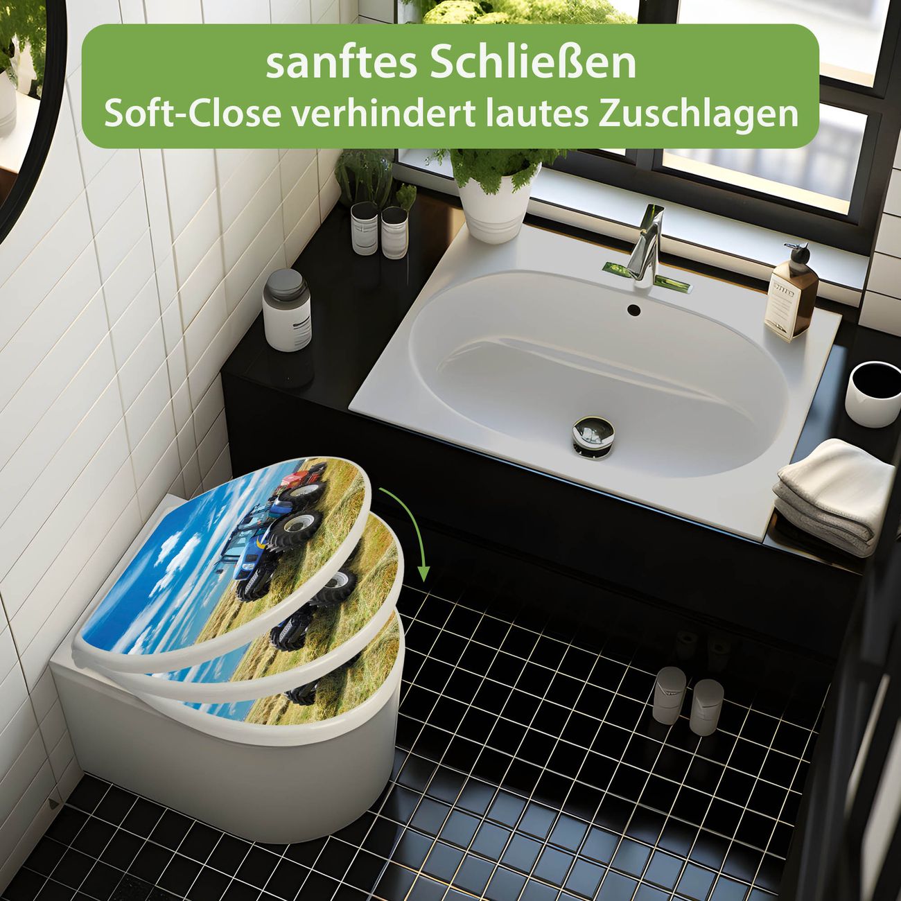 Toilettendeckel weiß mit Absenkautomatik Motiv Traktor