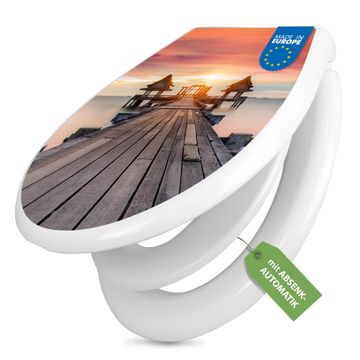 FUNKTION:Mit dem banjado Familien WC Sitz mit Absenkautomatik und dem Motiv Motiv Überm Nebelmeer verbinden Sie Design mit Funktionalität. Sie erhalten den Toilettendeckel in bewährt guter Qualität mit Montagematerial passend auf alle Euro-WC-Becken. Die Gesamtgröße beträgt 37,1cm x 44,9cm x 5cm, die Grundfarbe ist weiß.</p> DESIGN:Der Klodeckel in weiß mit Motiv Motiv Überm Nebelmeer hat eine ansprechende Optik, eine besondere Form und ist sehr stabil. Das Motiv besteht aus einer farbbrillianten Motivfolie, die durch ein Schutzlaminat zusätzlich vor Kratzern schützt. Der integrierte Kindersitz fügt sich harmonisch ein. DETAILS:Der Toilettensitz mit Soft Close besteht aus hochwertigem Polypropylen, ist geruchlos, ungiftig und kann mit handelsüblicher Seife gereinigt werden. Die Montage kann von von oben oder von unten erfolgen und ist kinderleicht. NUTZEN:Mit Hilfe der detaillierten Aufbauanleitung ermöglichen wir eine schnelle und unkomplizierte Montage. Die banjado Klobrille ist universell geeignet für alle Euro-WC-Schüsseln. Der Kindersitz kann unkompliziert entfernt werden. BANJADO:Ihr WC-Deckel wird in Sachsen in einer kleinen Manufaktur von Hand veredelt. Die Motivfolie ist lösungsmittelfrei und schutzlaminiert für einen langen Halt. Wir wünschen viel Freude bei der Auswahl eines schönen Motivs.