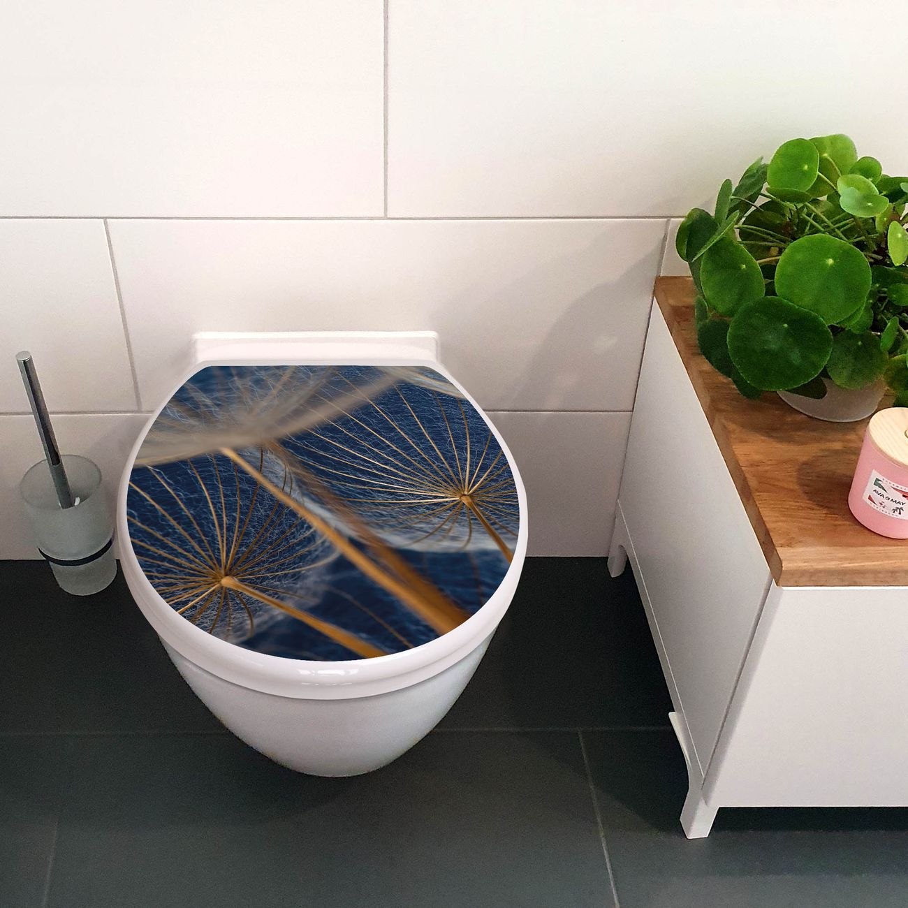 Toilettendeckel weiß mit Absenkautomatik Motiv Verblüht
