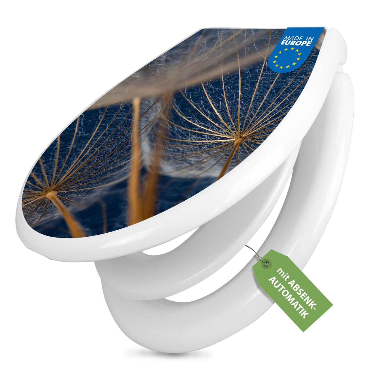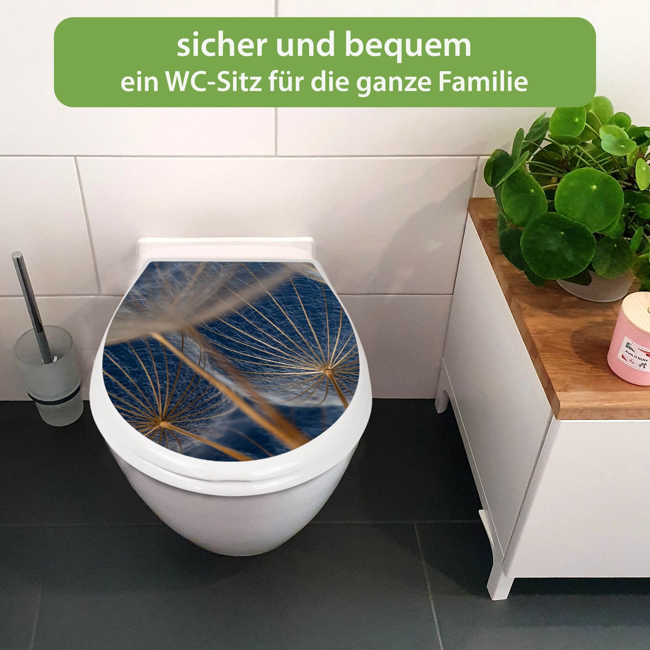 Toilettendeckel weiß mit Absenkautomatik Motiv Verblüht