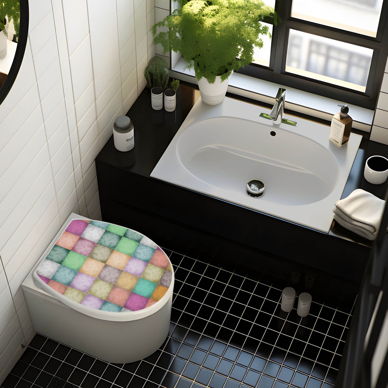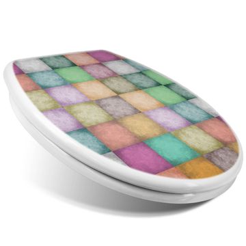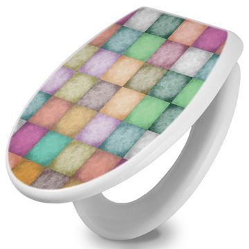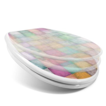 Toilettendeckel weiß mit Absenkautomatik Motiv Verwaschene Quadrate