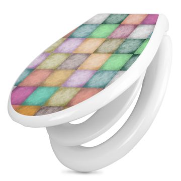 Toilettendeckel weiß mit Absenkautomatik Motiv Verwaschene Quadrate