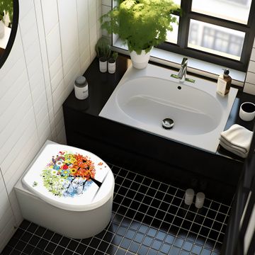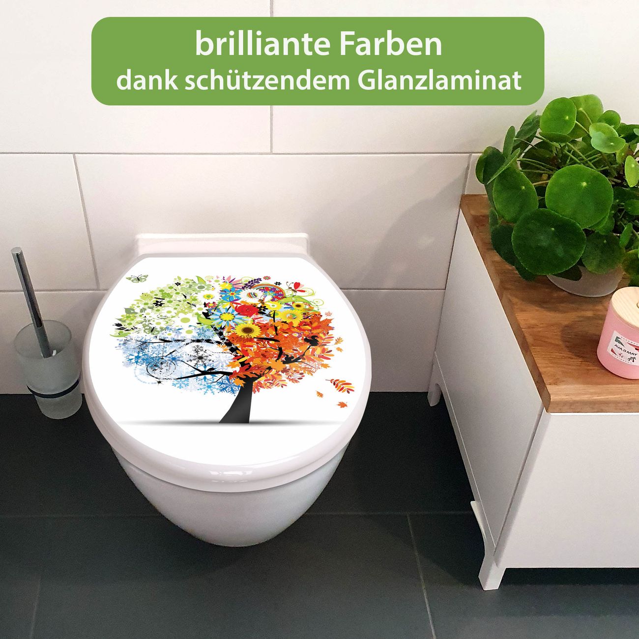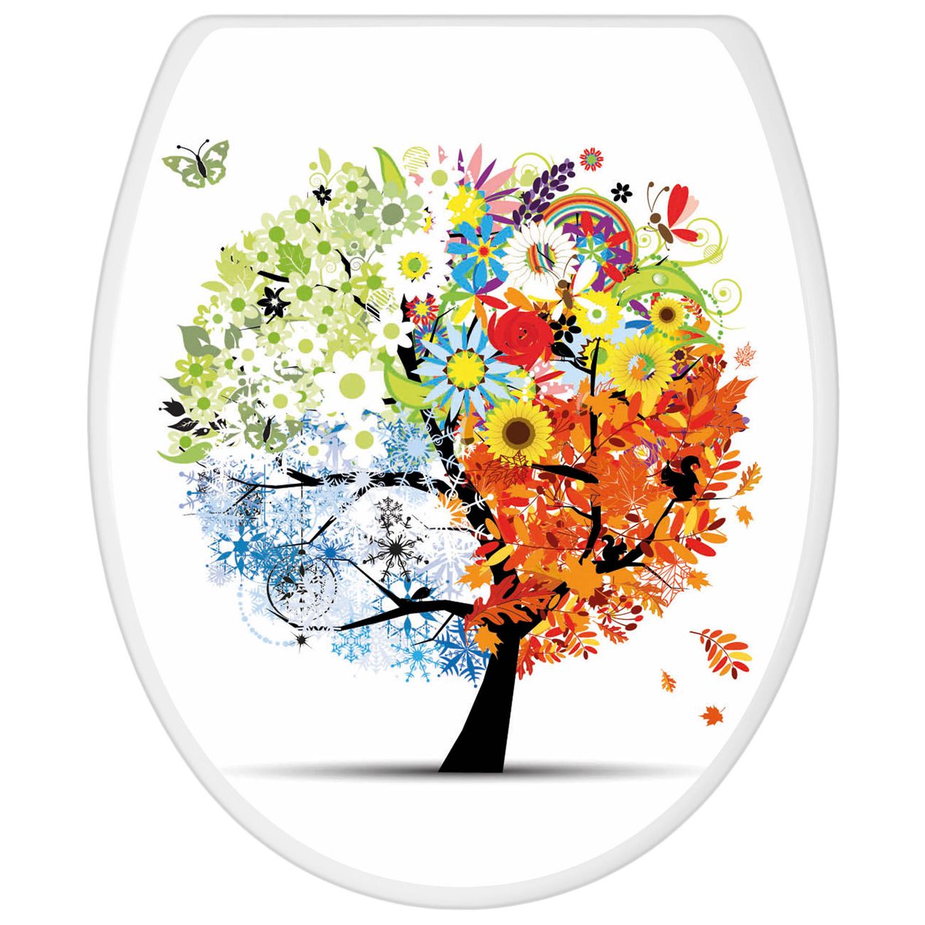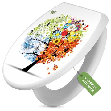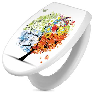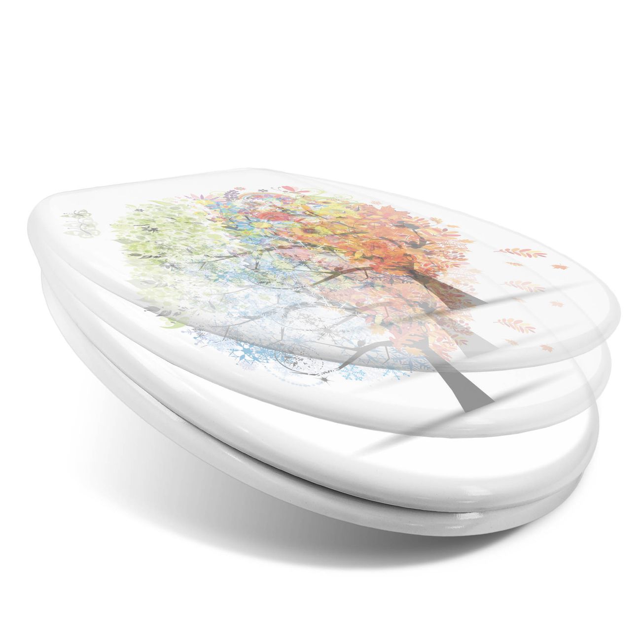 Toilettendeckel weiß mit Absenkautomatik Motiv Vier Jahreszeiten
