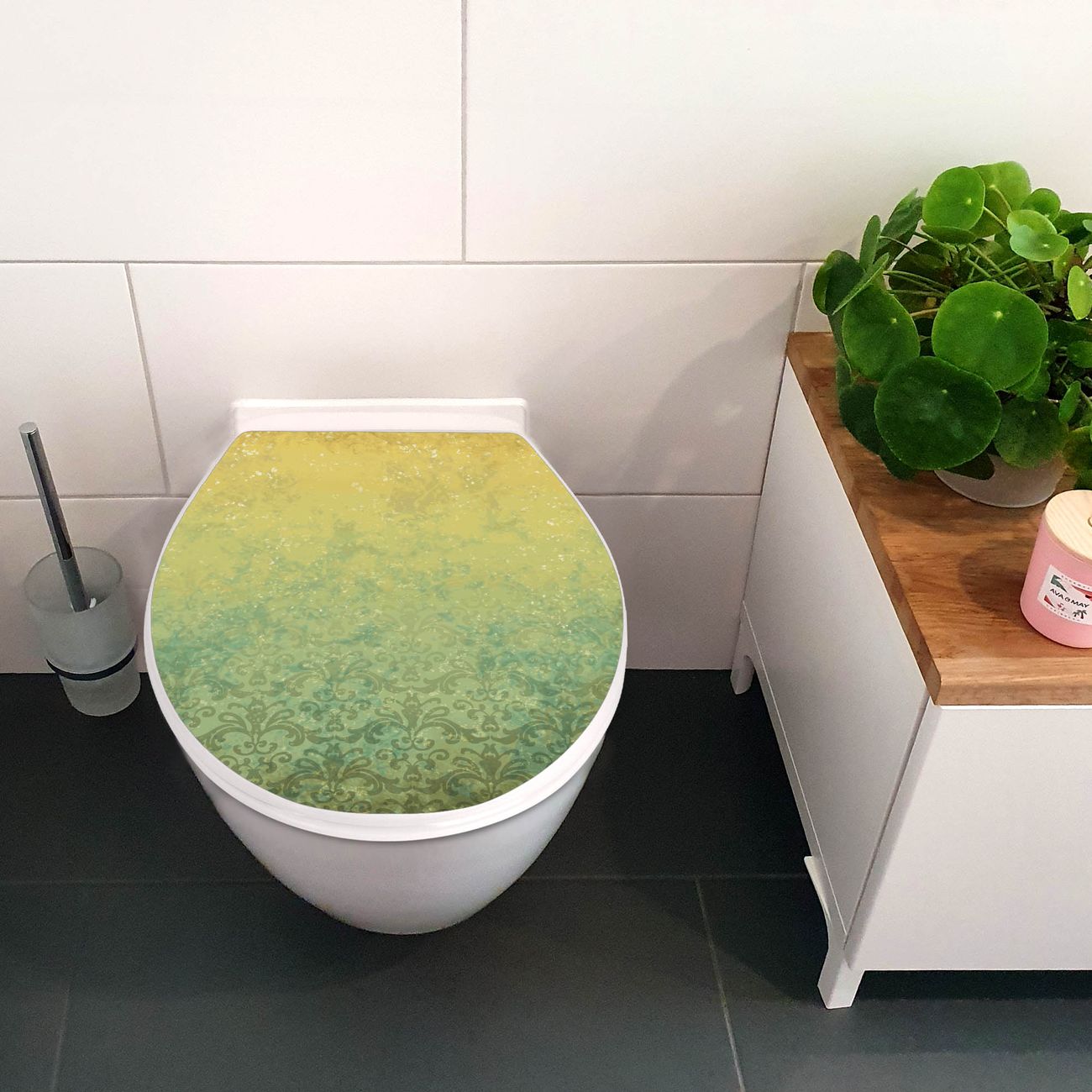 Toilettendeckel weiß mit Absenkautomatik Motiv Vintage Messing