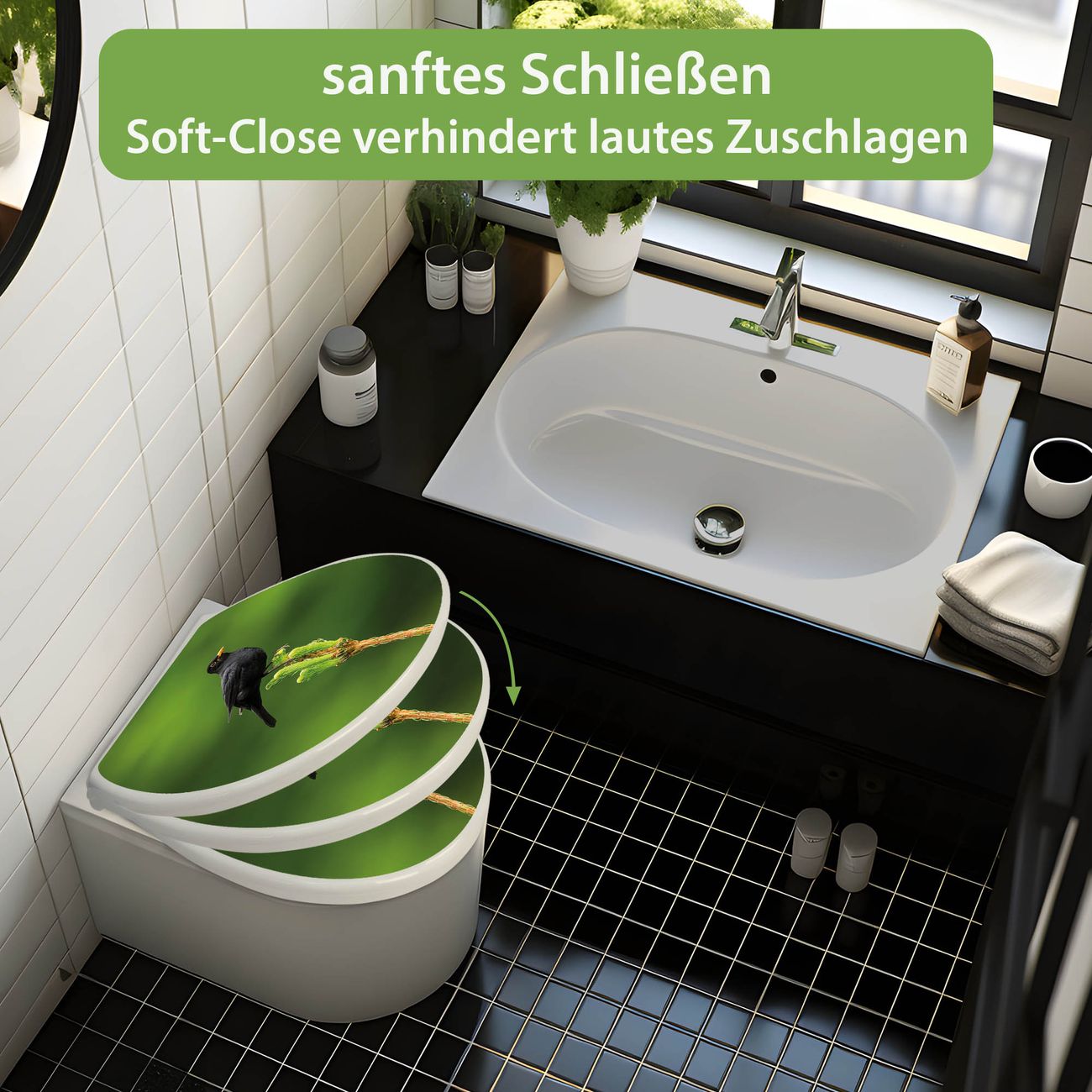 - Material: WC-Sitz und Deckel aus robustem Duroplast