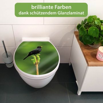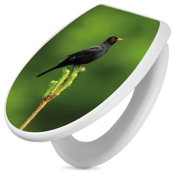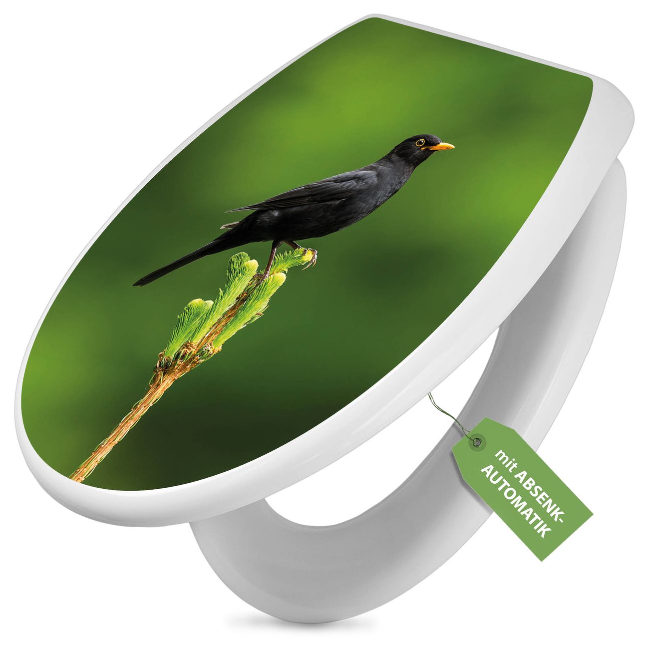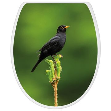 Toilettendeckel weiß mit Absenkautomatik Motiv Vogel auf Tannenzweig