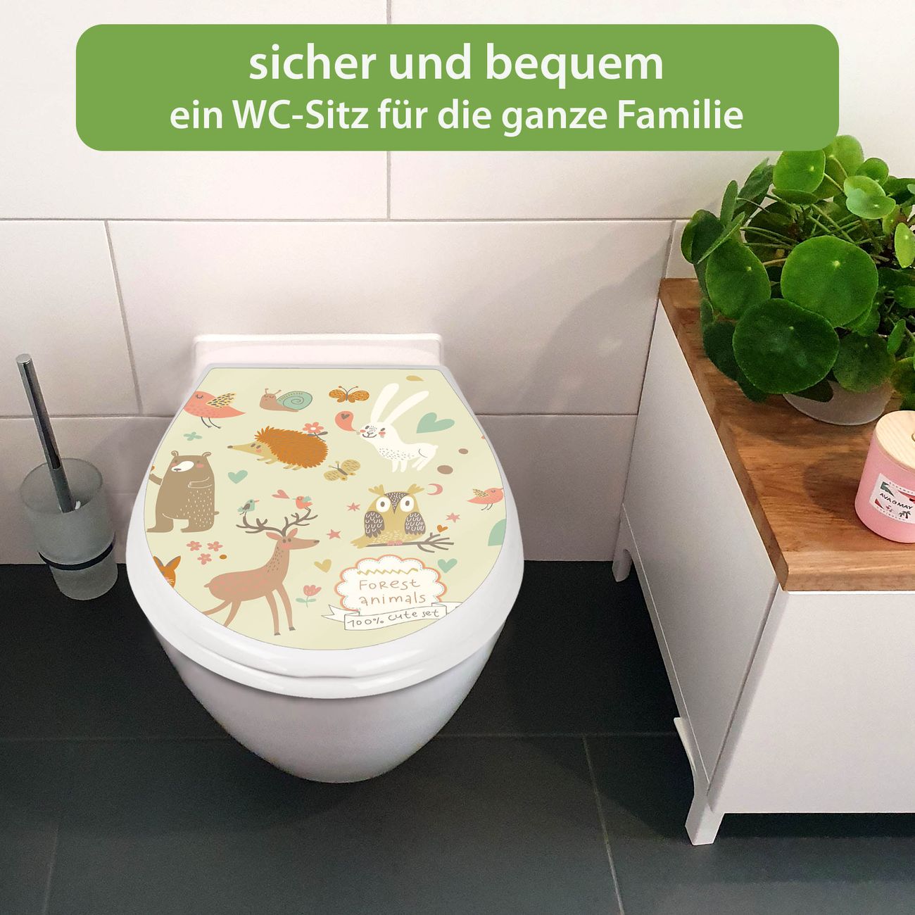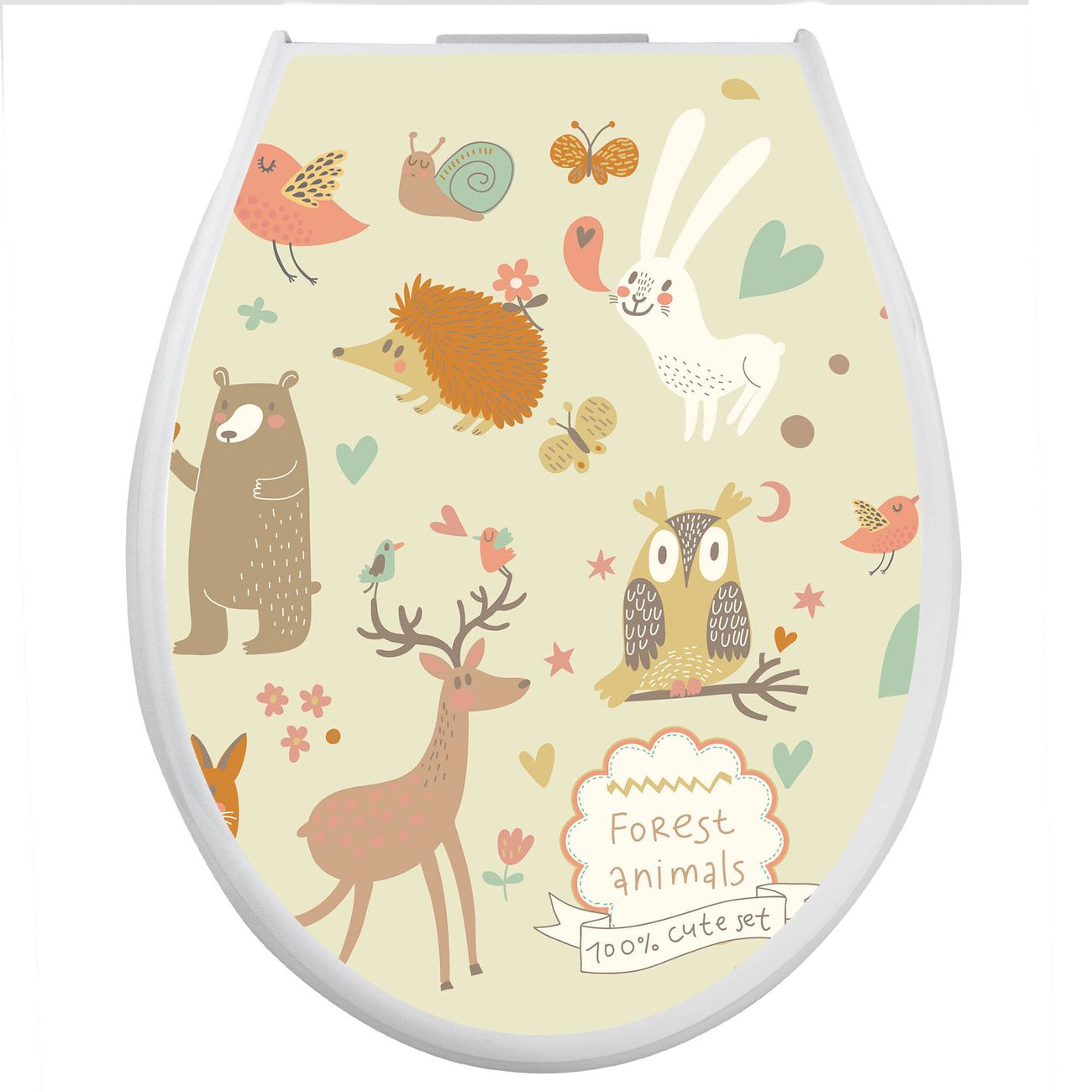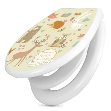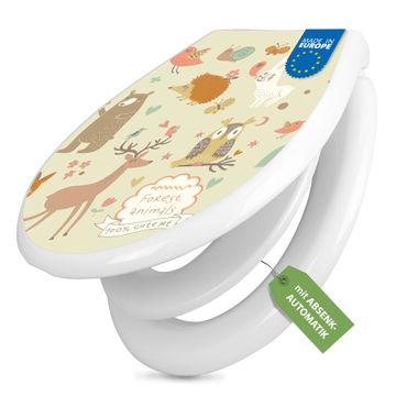Toilettendeckel weiß mit Absenkautomatik Motiv Waldtiere
