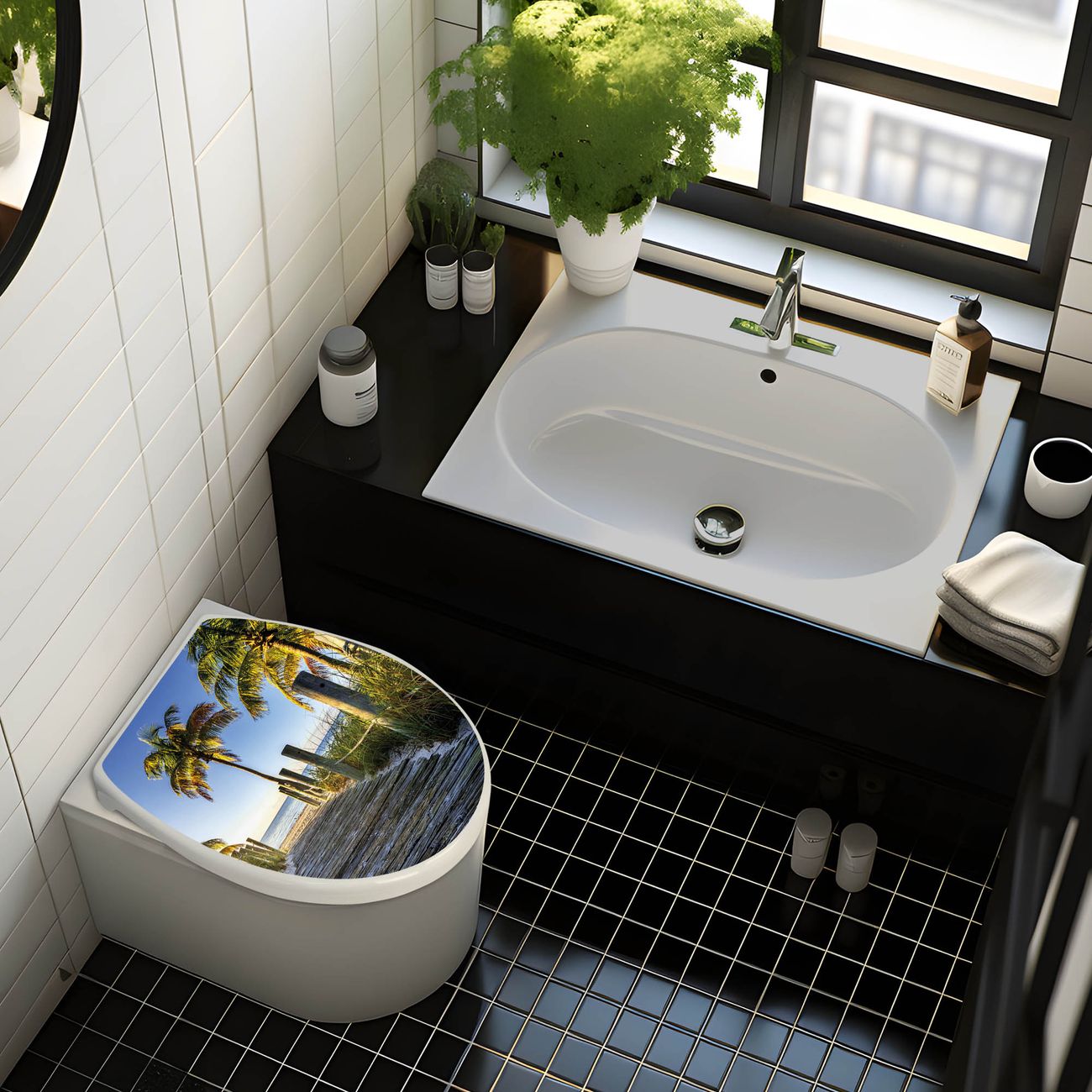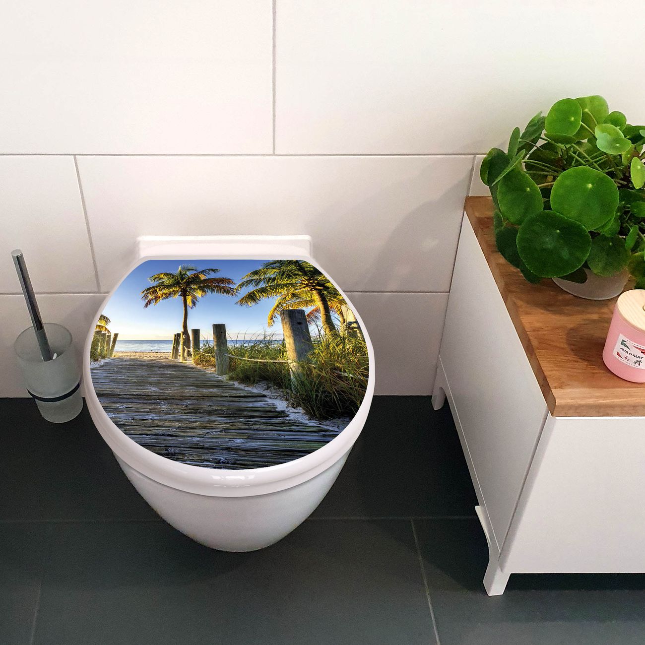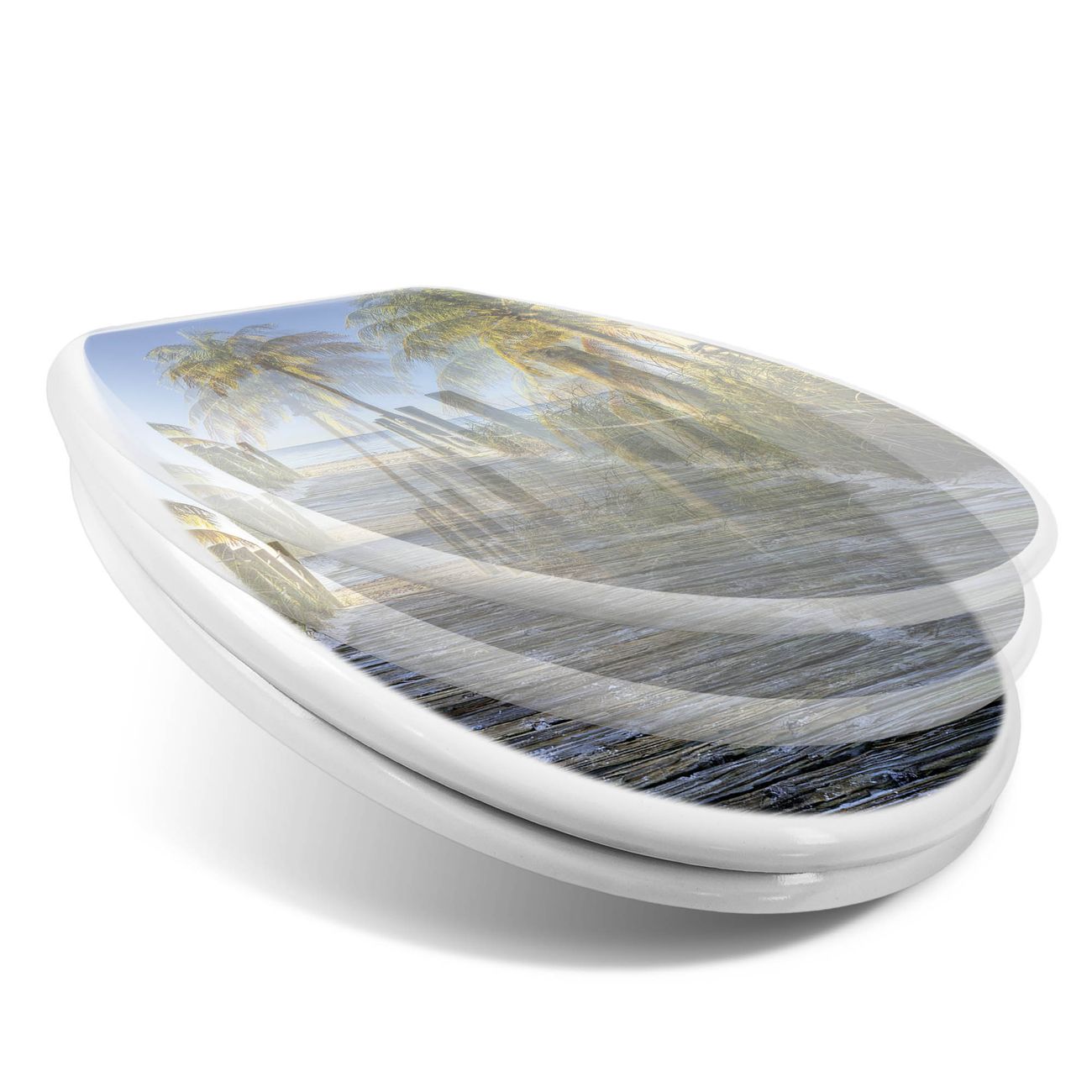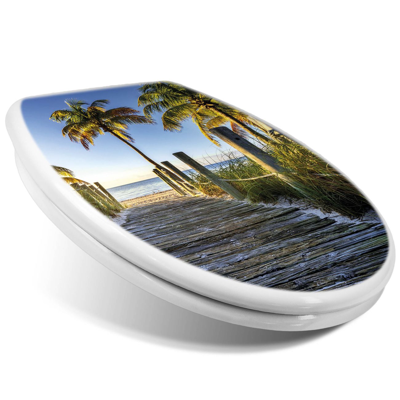 Toilettendeckel weiß mit Absenkautomatik Motiv Weg zum Strand