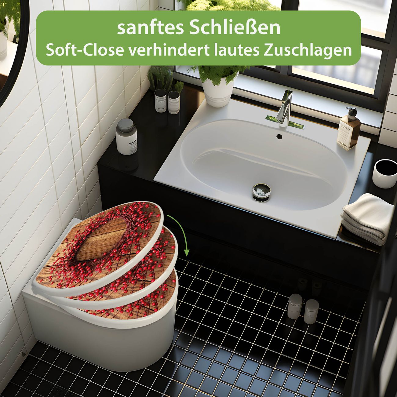 Toilettendeckel weiß mit Absenkautomatik Motiv Weihnachtskranz