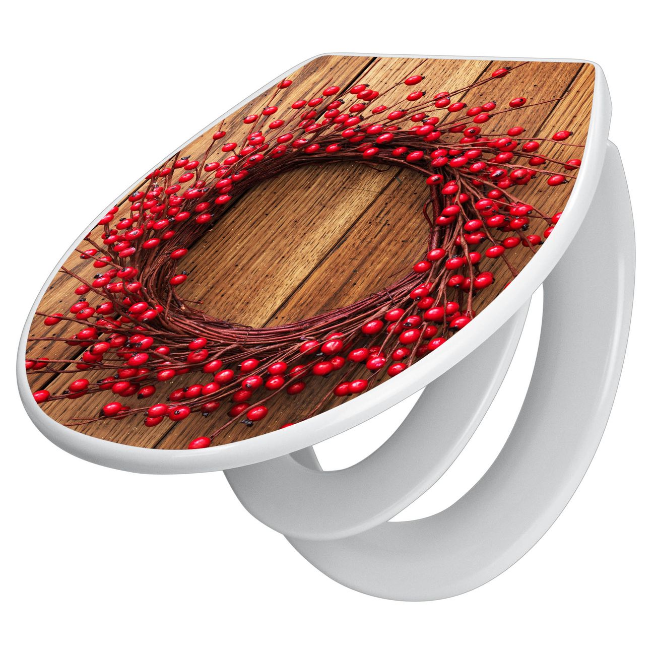 Toilettendeckel weiß mit Absenkautomatik Motiv Weihnachtskranz